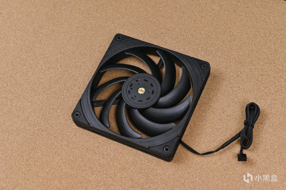 外观通体黑色,涡轮扇叶,四角都有缓震橡胶,同时采用动平衡点胶 2.0 工艺,实现 XYZ 三次元动平衡校正。框架是三角对称式设计,增加 23% 有效出风面积,提升 20% 结构受压强度。