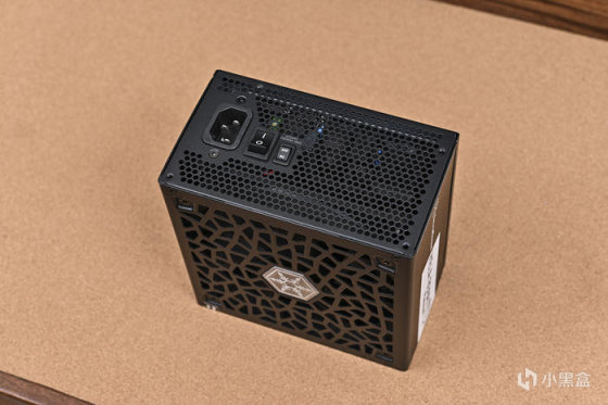 电源尾部通体镂空通风散热设计,中间 0dB Fan 按钮在( ON) 时为风扇启停技术模式,其可以在低于 30% 负载时完全停转风扇,左侧为电源开关及接口。