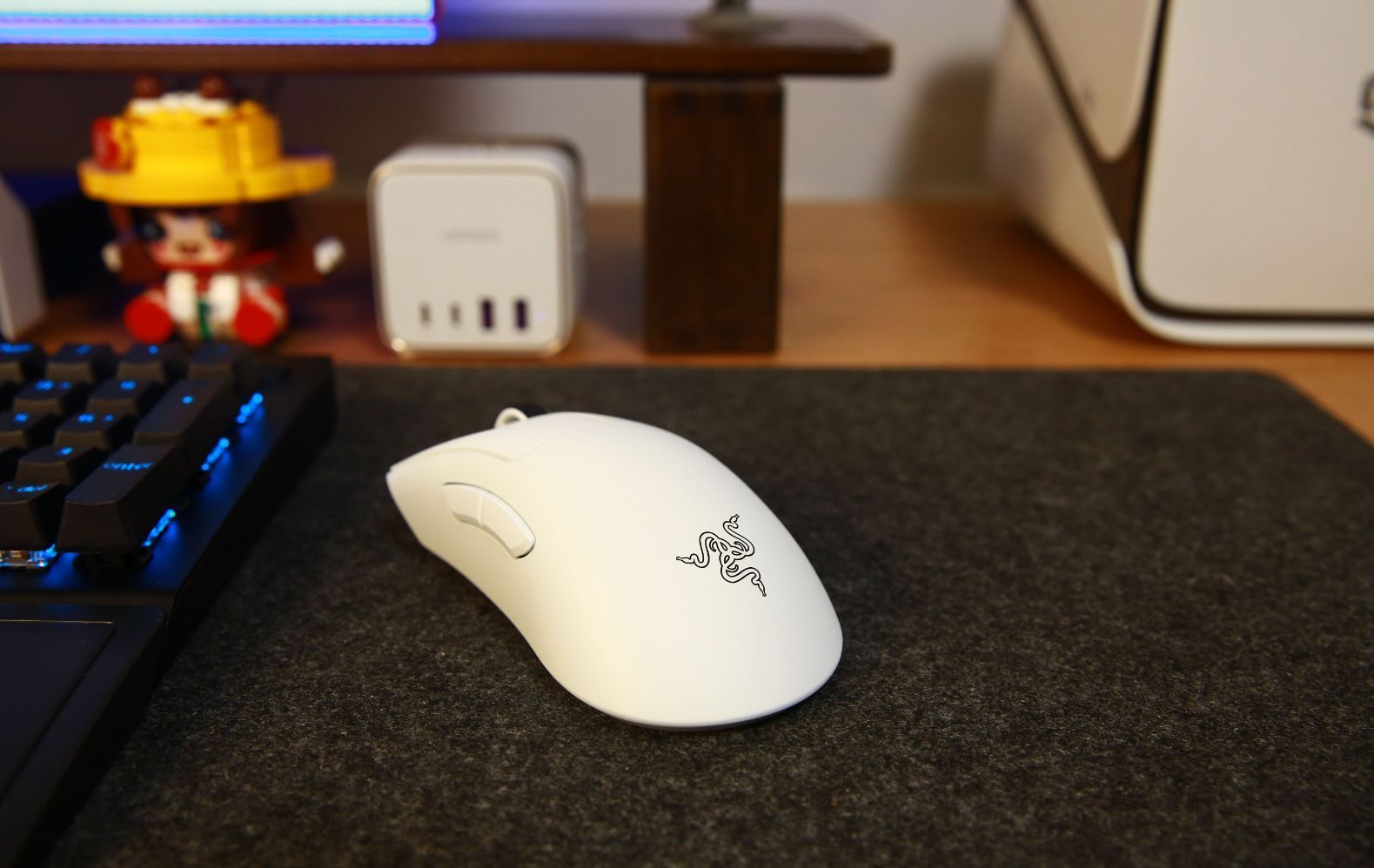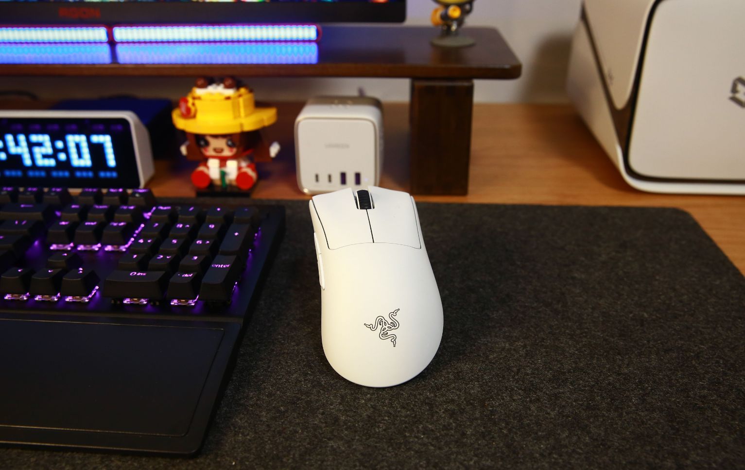 鍵鼠是大名鼎鼎的燈廠——雷蛇黑寡婦蜘蛛V3鍵盤,雷蛇黑寡婦V3是一款針對遊戲電競的需求的產品,我這款採用了黃軸,支持RGB和軟件自定義顏色,鍵帽採用了全新的雙色注塑ABS鍵帽。兩段式腳撐,背部理線槽和三向出線皆有配備。