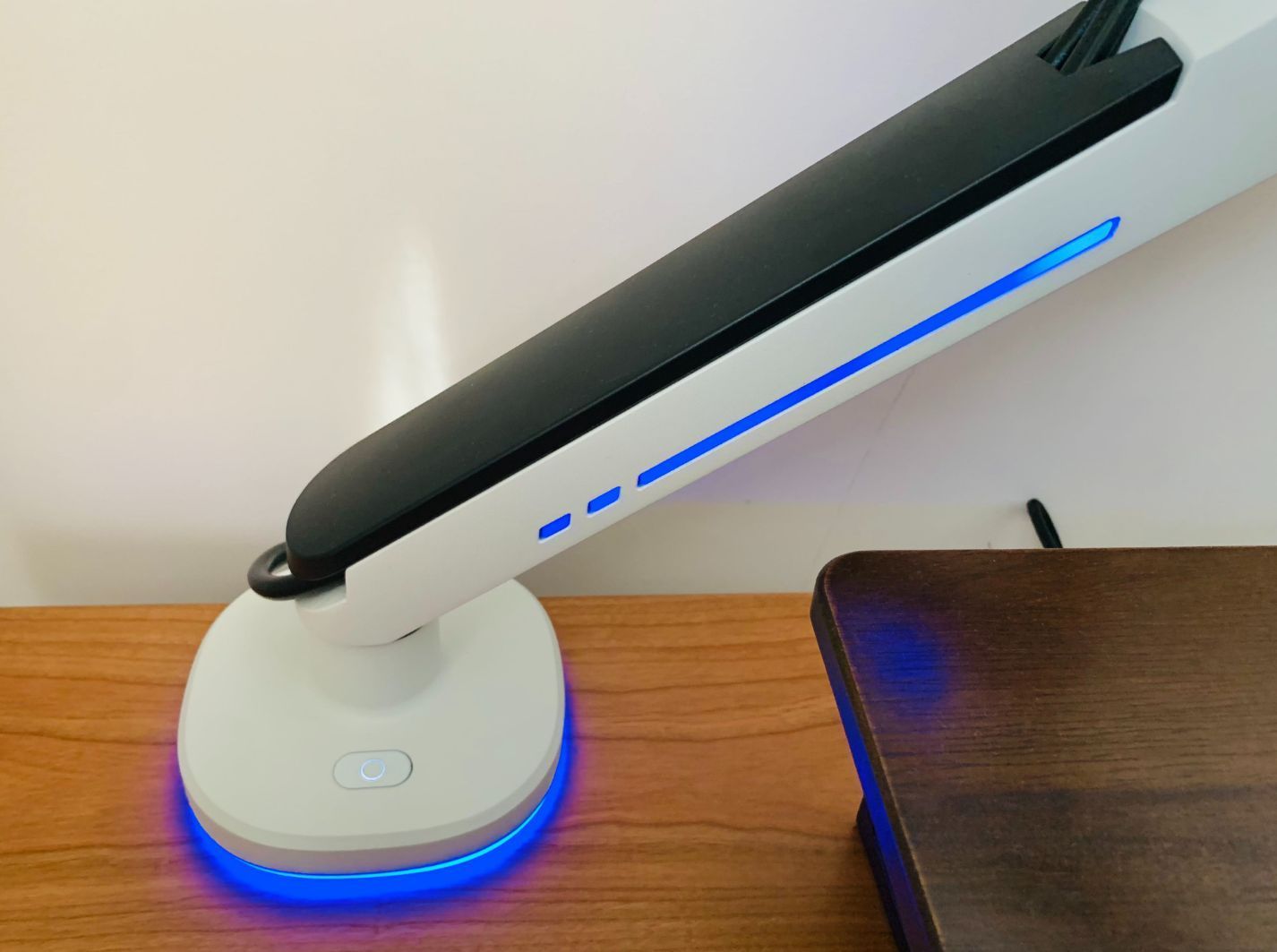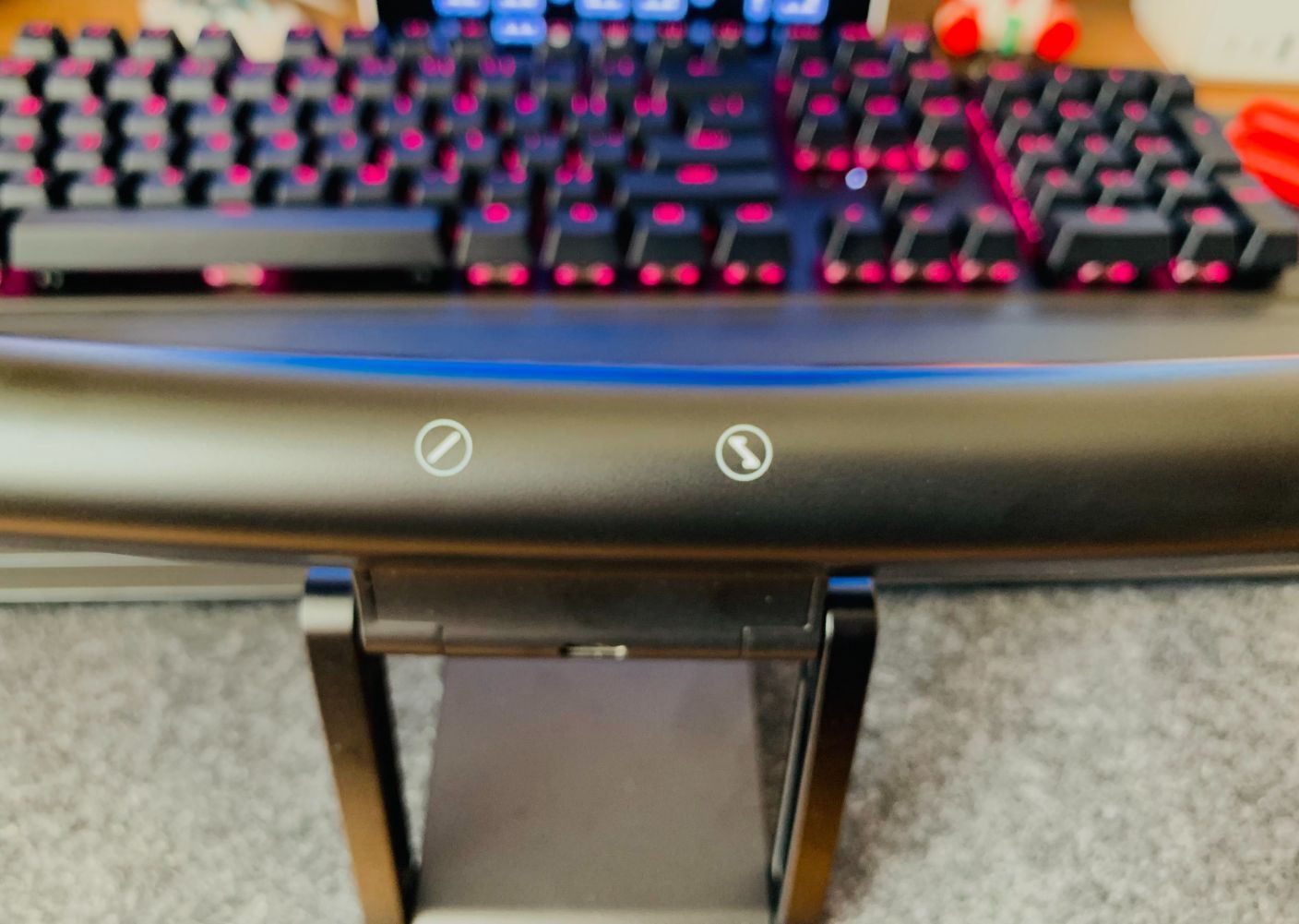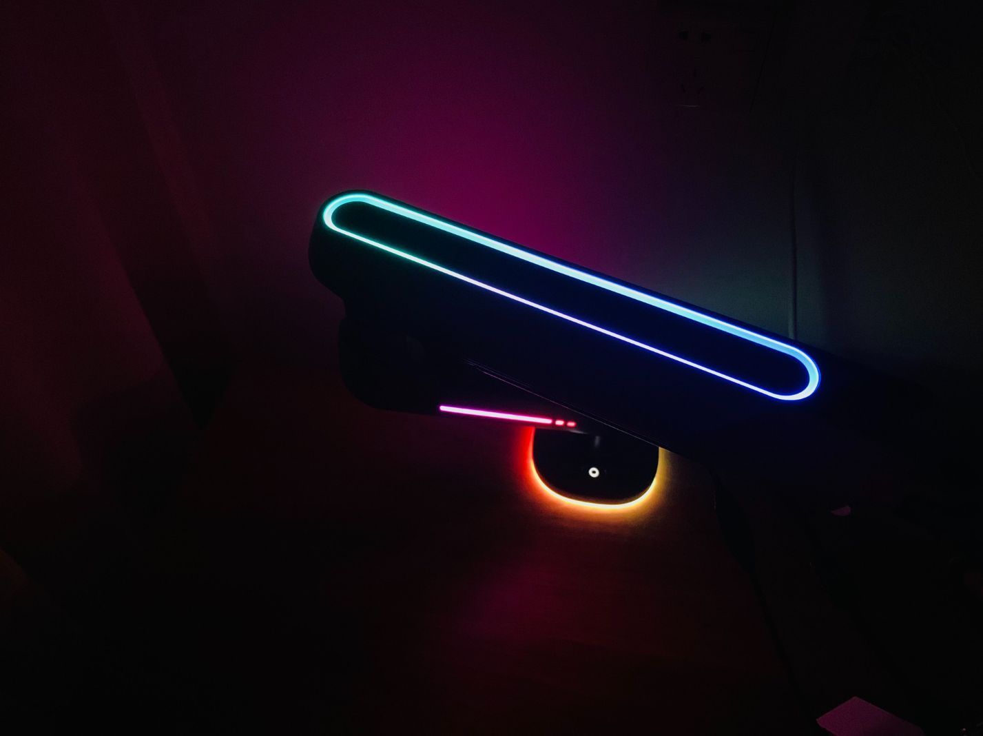 這款支架跟北弧其他支架產品的不同,那就是在於它是支持RGB的,底座和機械臂上隱藏着LED燈條,在接通電源之後實現發光的效果, 支架有20種模式的RGB效果,長按則可以進行開關機切換,短按則可切換到下一種模式。