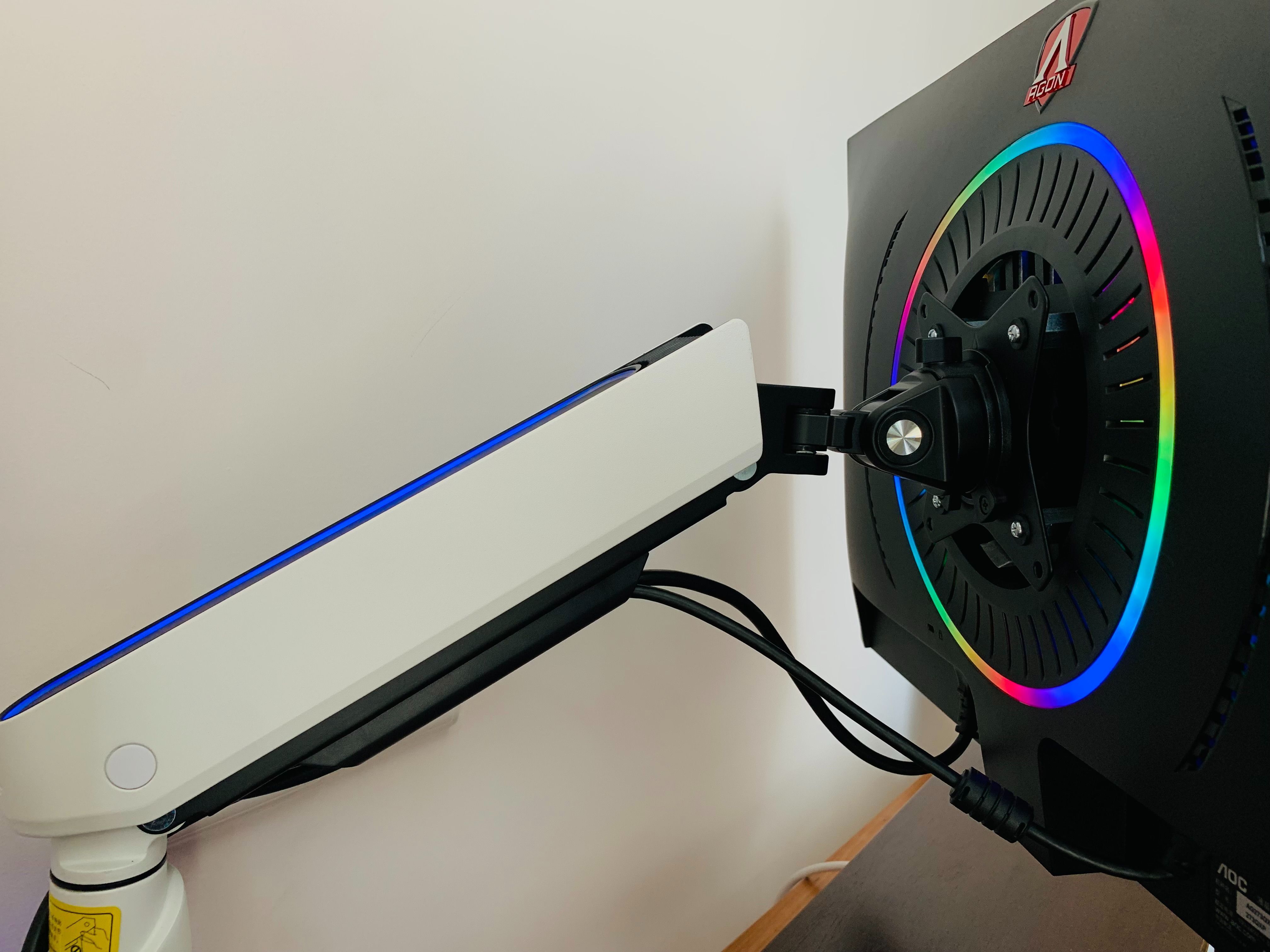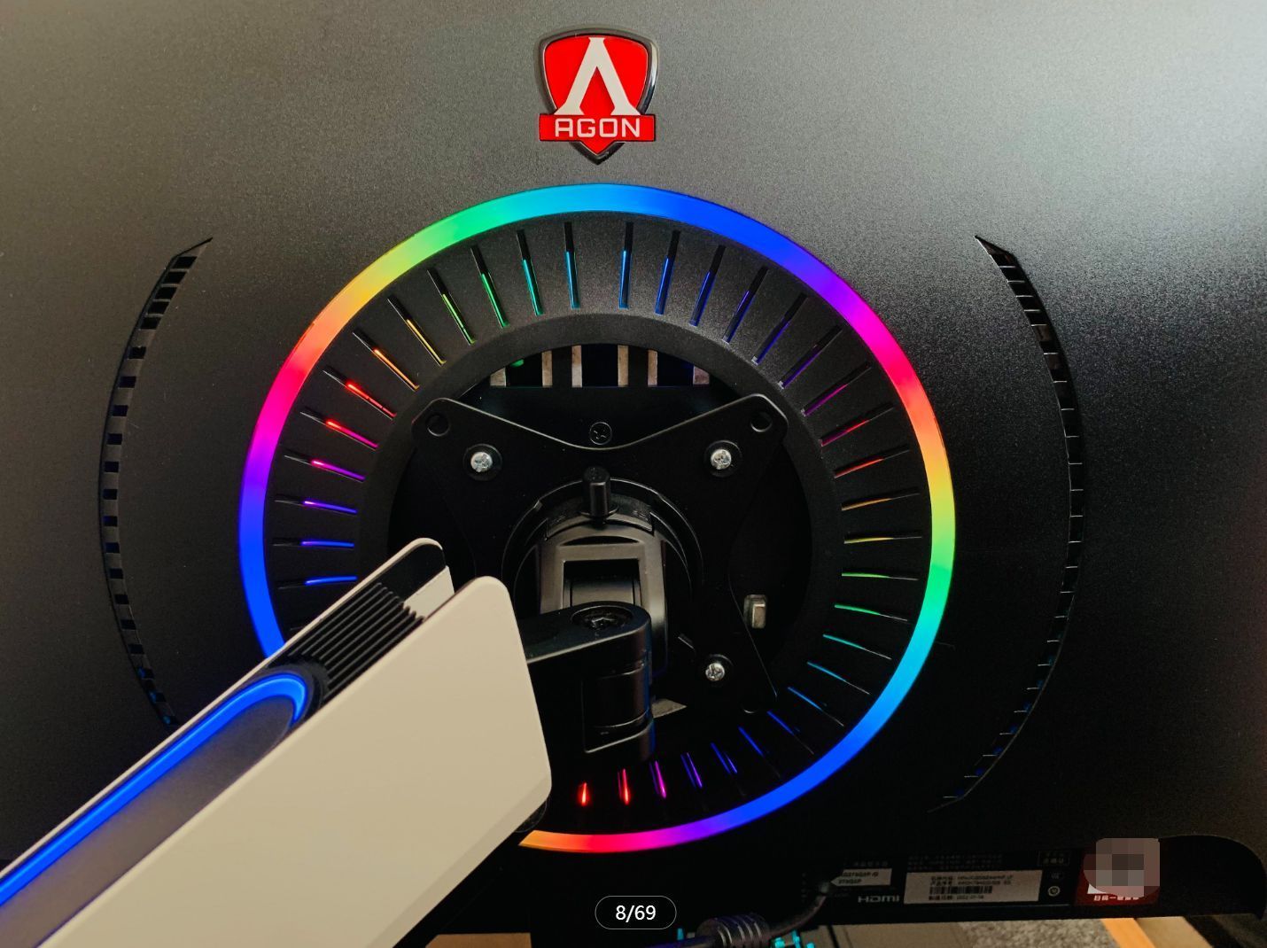 AGON AG273QXP/D在背面有AGON標誌性的盾形徽標,以及一個RGB燈環,燈光的亮度提供了多個等級的調節,同時也提供了非常豐富的燈效,這些都可以根據你的需求自定義設置,增加電競氛圍,在顯示器的左右兩側都設計了耳機掛鉤,可以方便的放置耳機,這樣可以把耳機支架淘汰掉了。