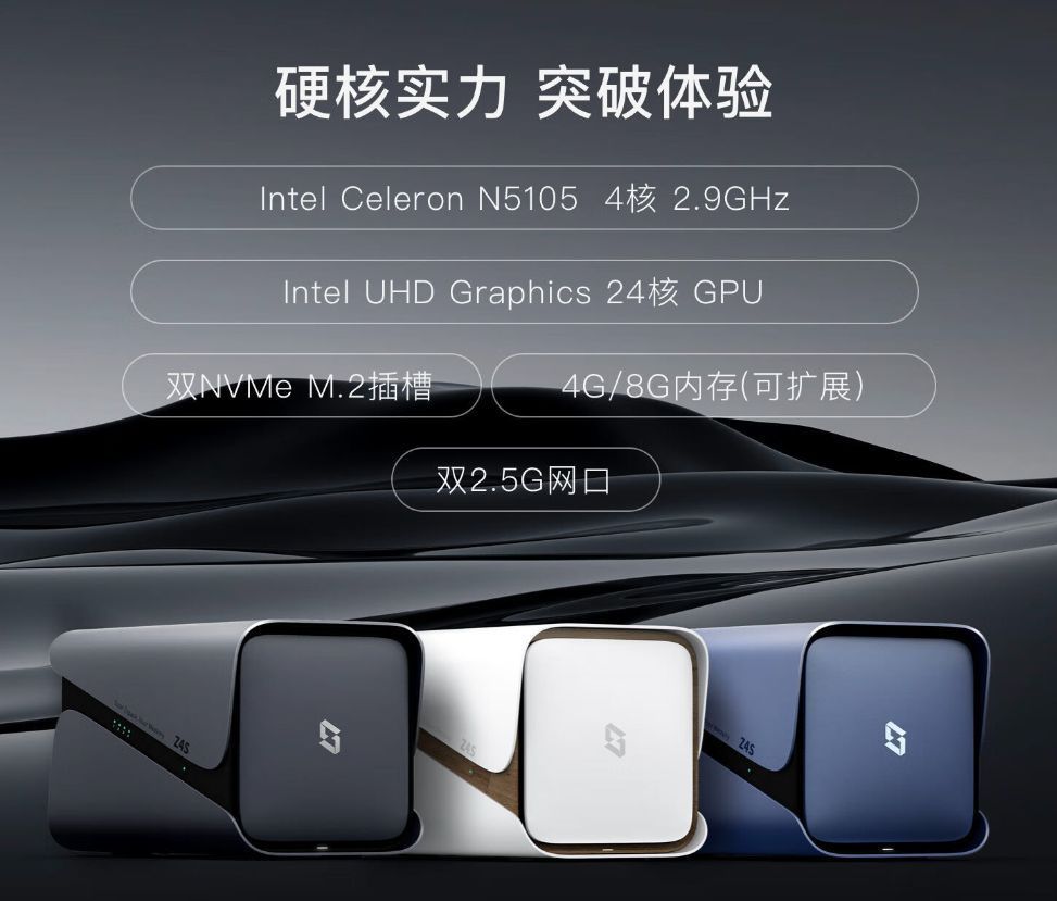 極空間Z4S採用N5105處理器,雙NVme插槽,8G內存,雙2.5G網口,配置拉滿,可以滿足99%的用戶需求,無論作爲影音服務器還是工作室協同都能得心應手。