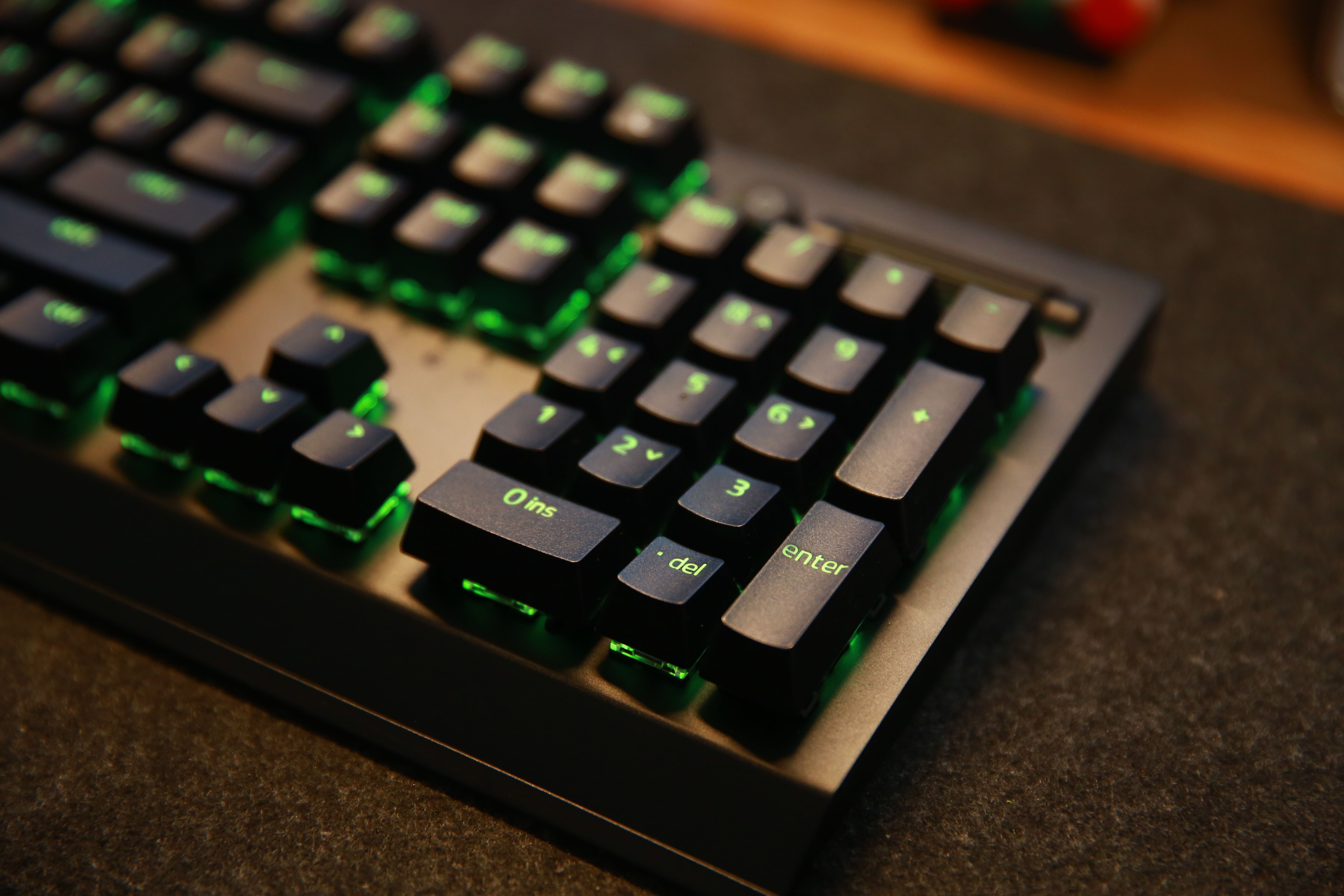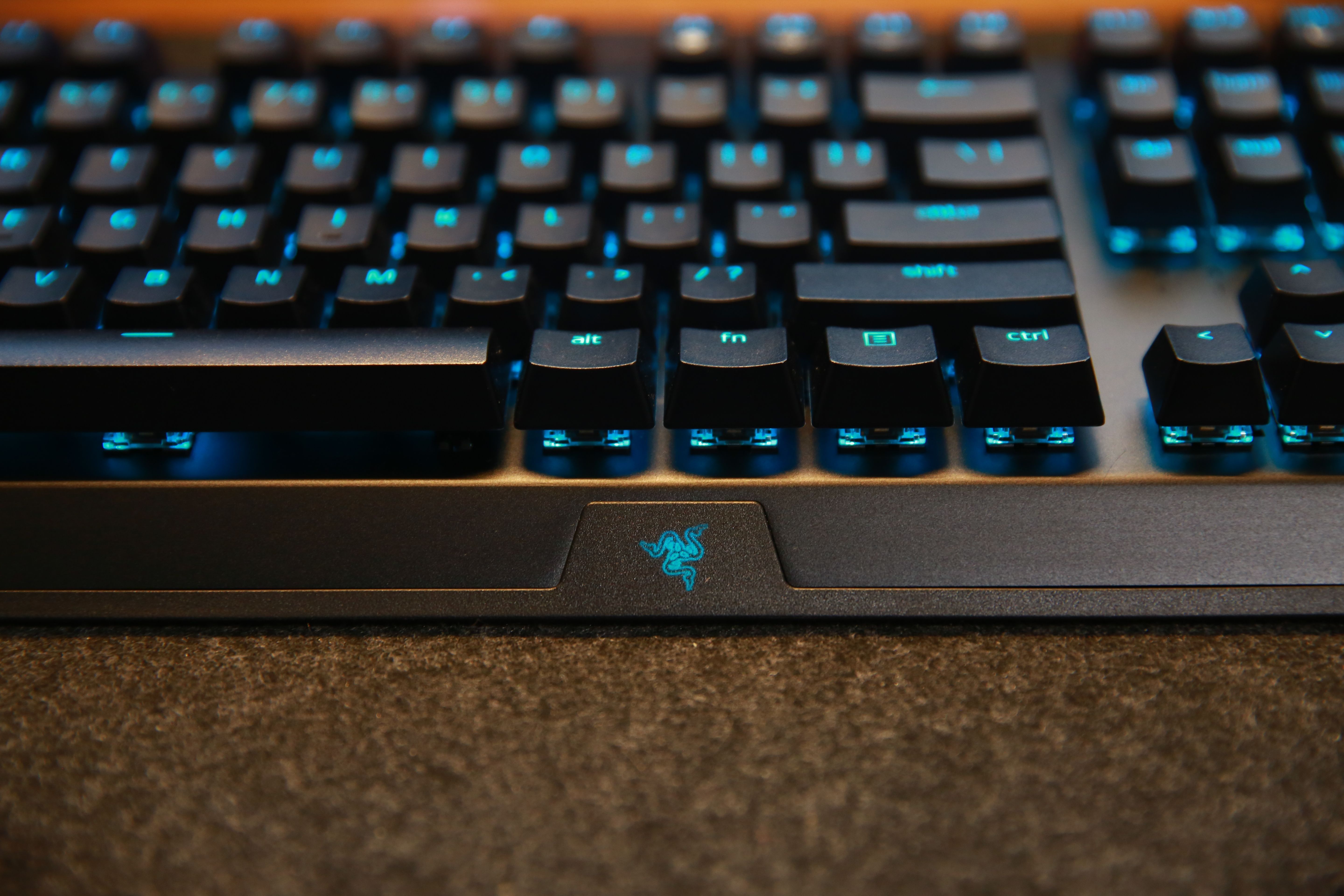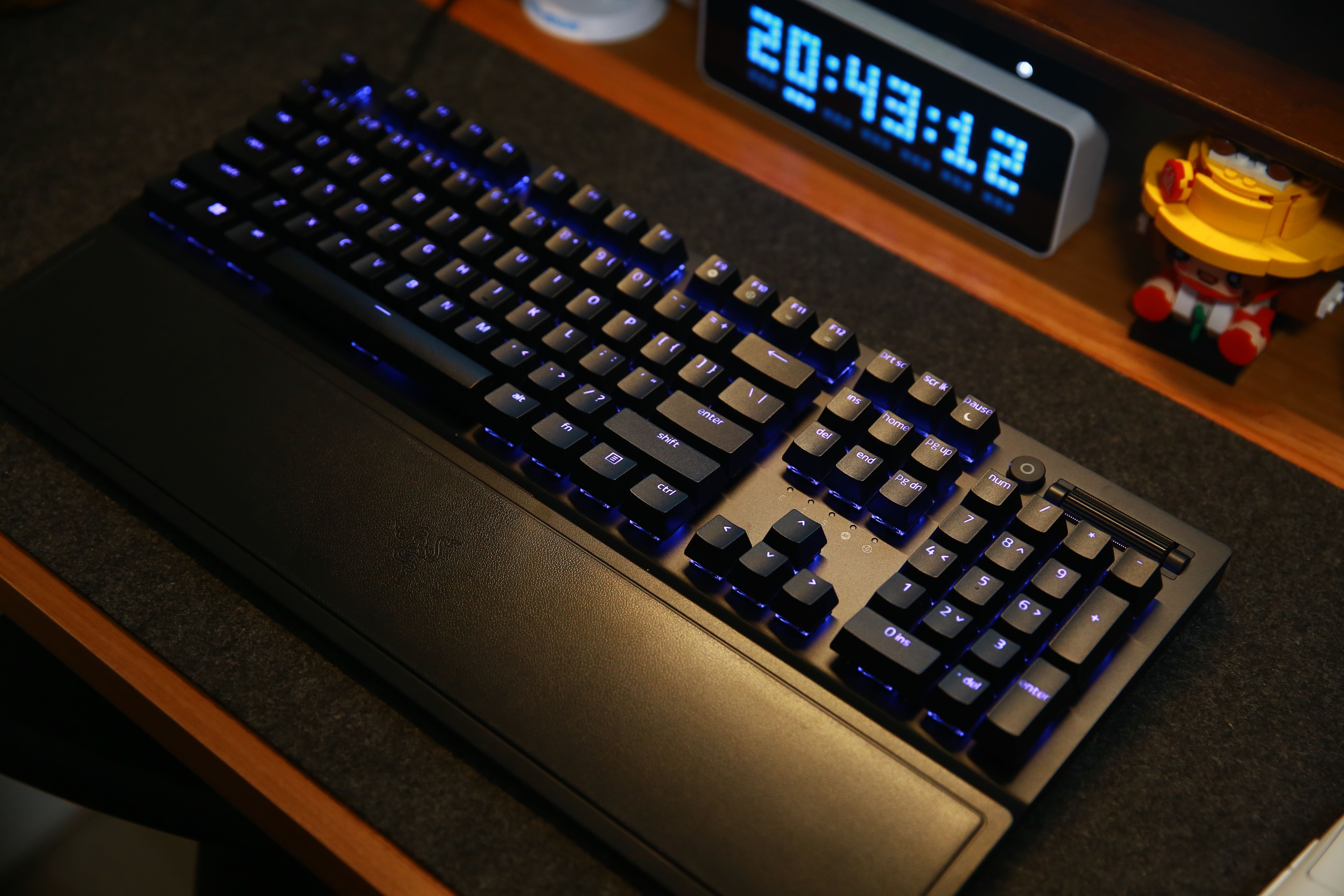 打開RGB燈效的情況下,雷蛇標誌性綠色的燈光透過鍵帽投射出來,效果真的非常漂亮。