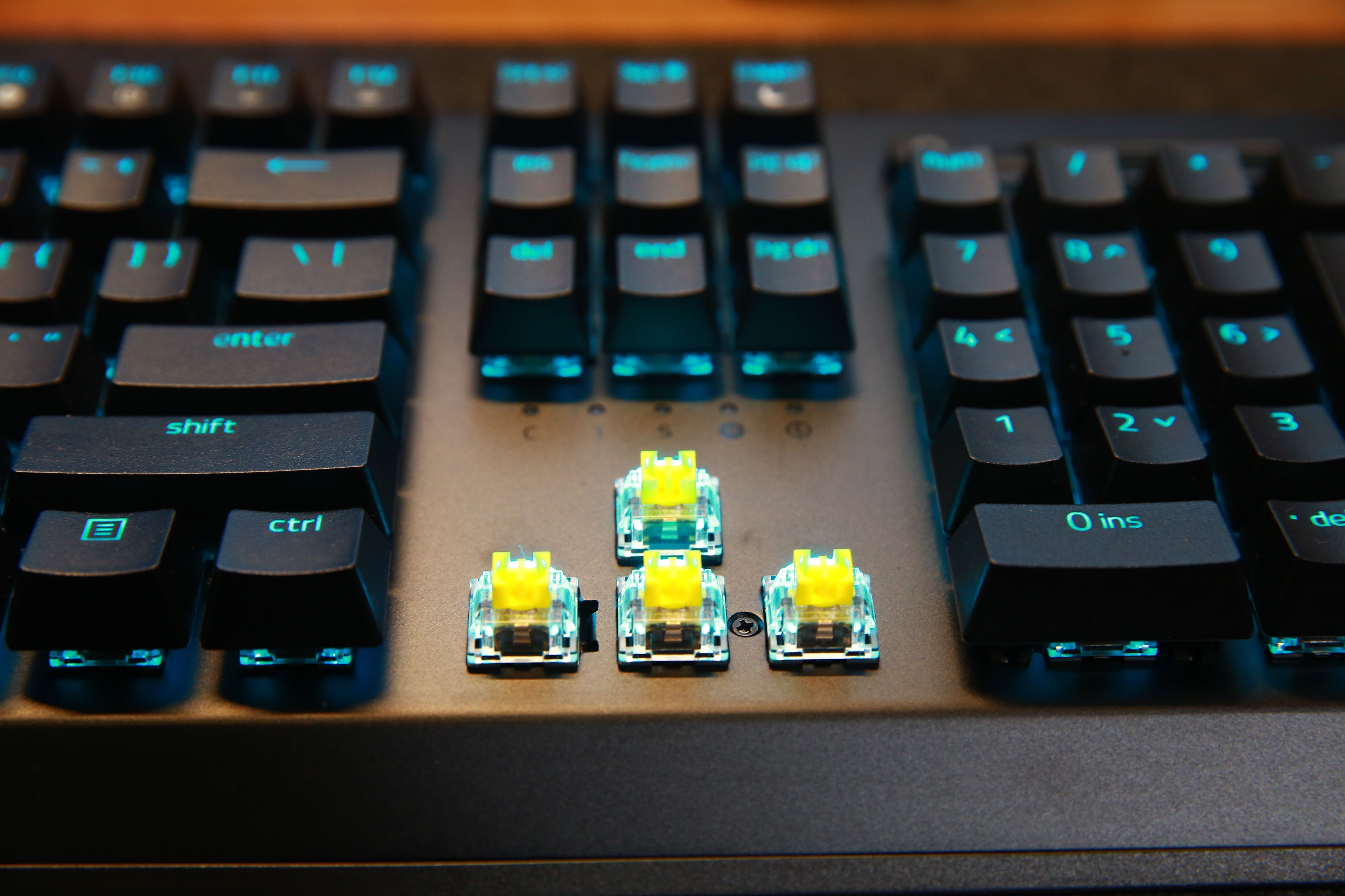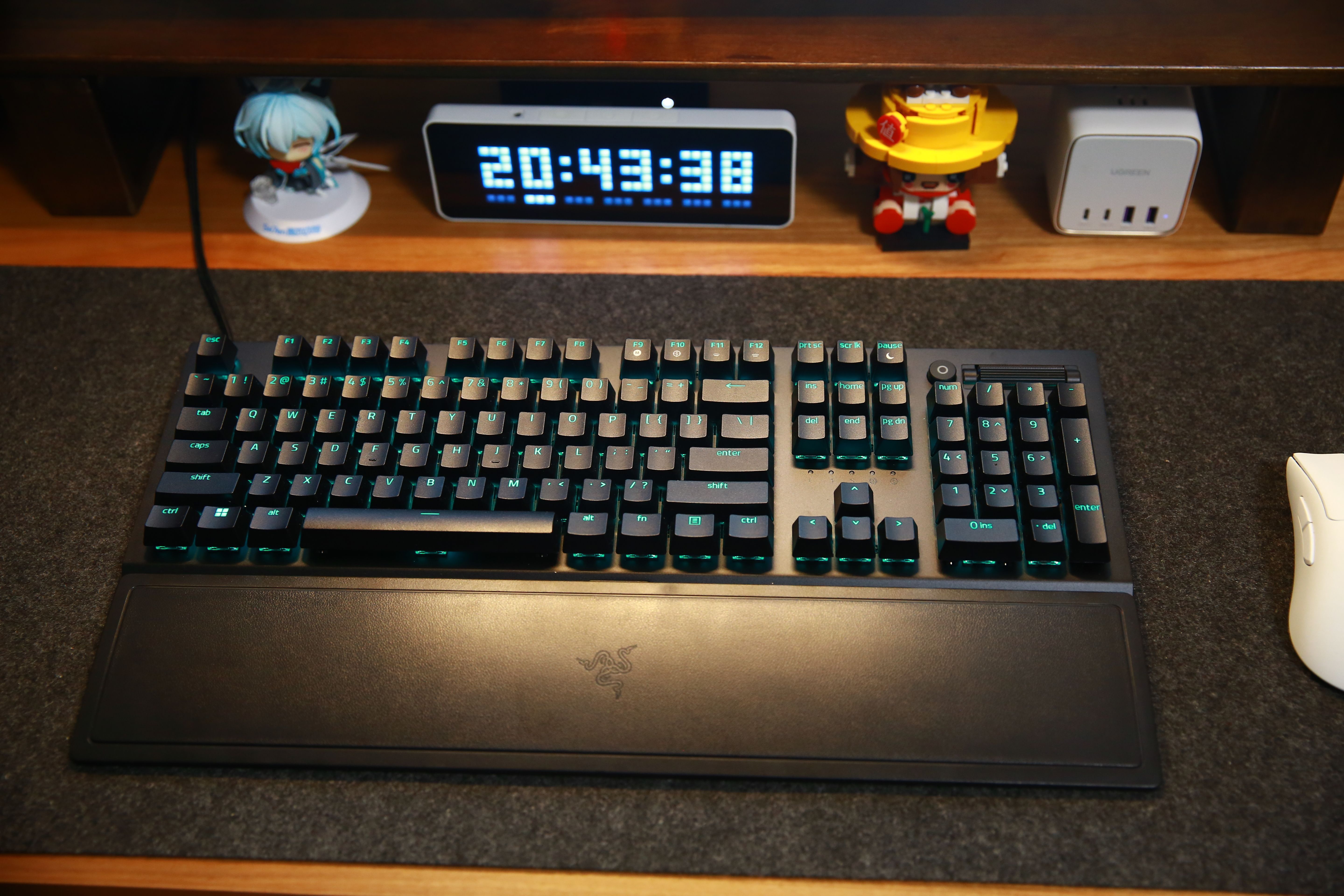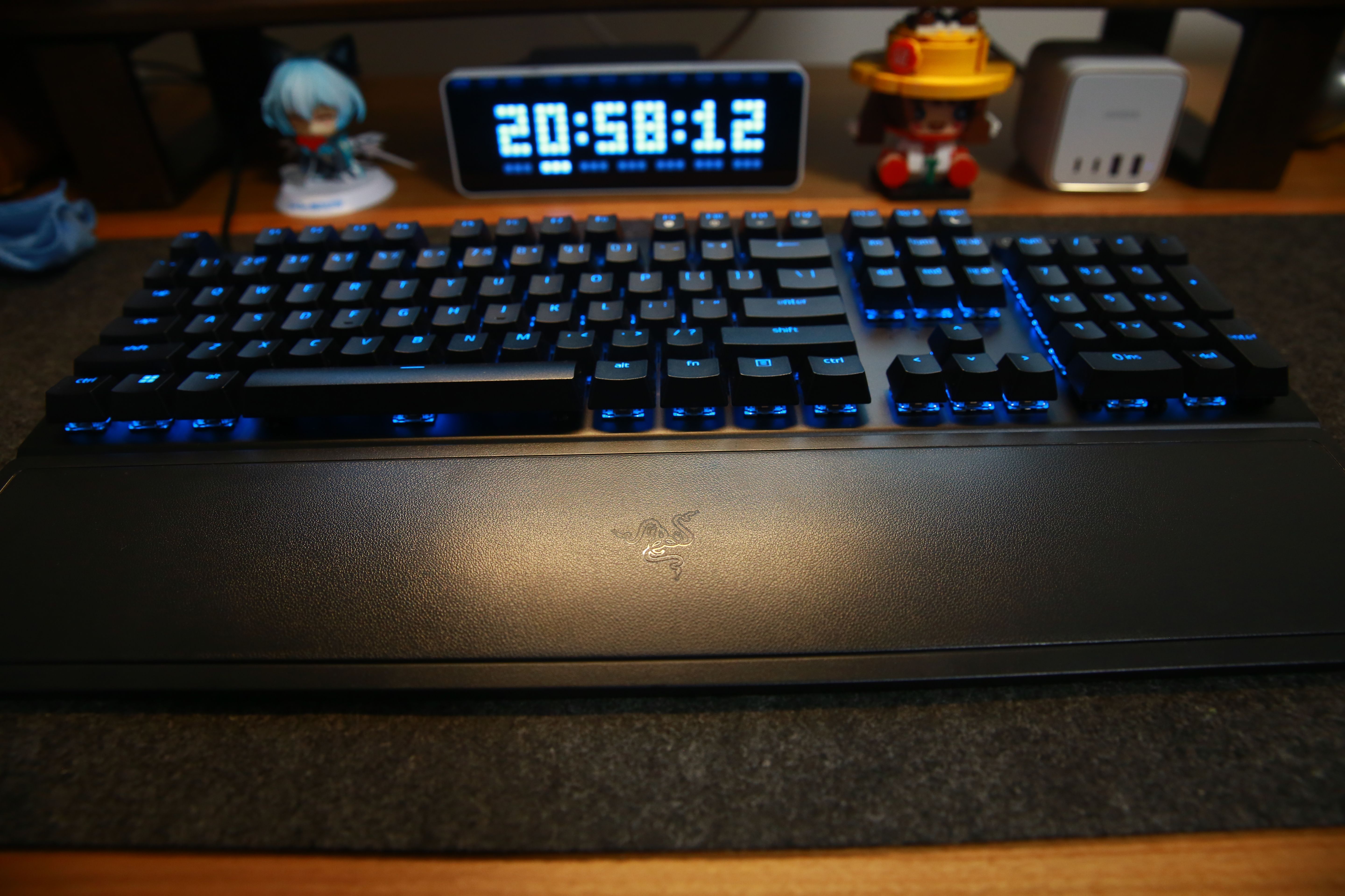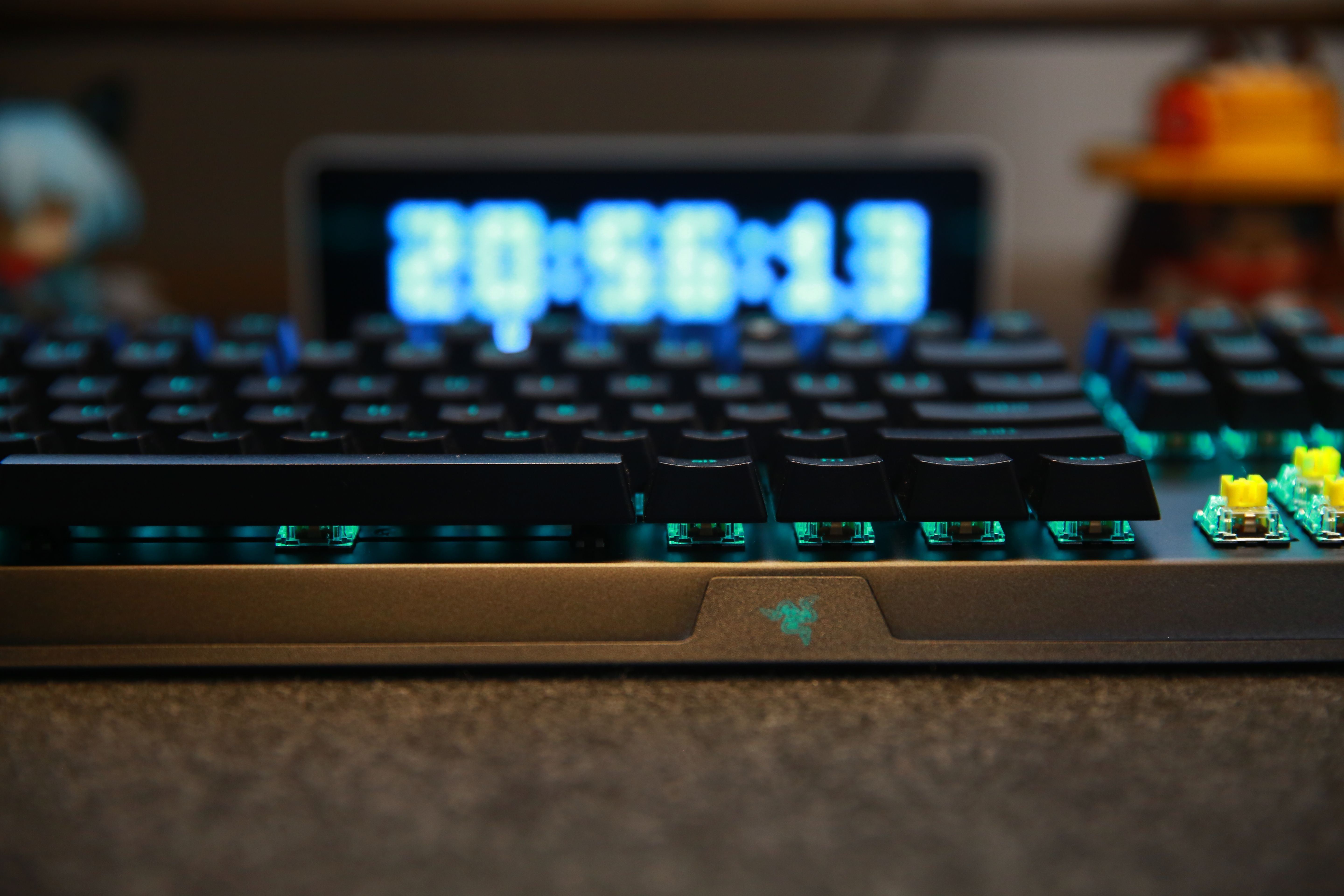 打開RGB燈效的情況下,雷蛇標誌性綠色的燈光透過鍵帽投射出來,效果真的非常漂亮。