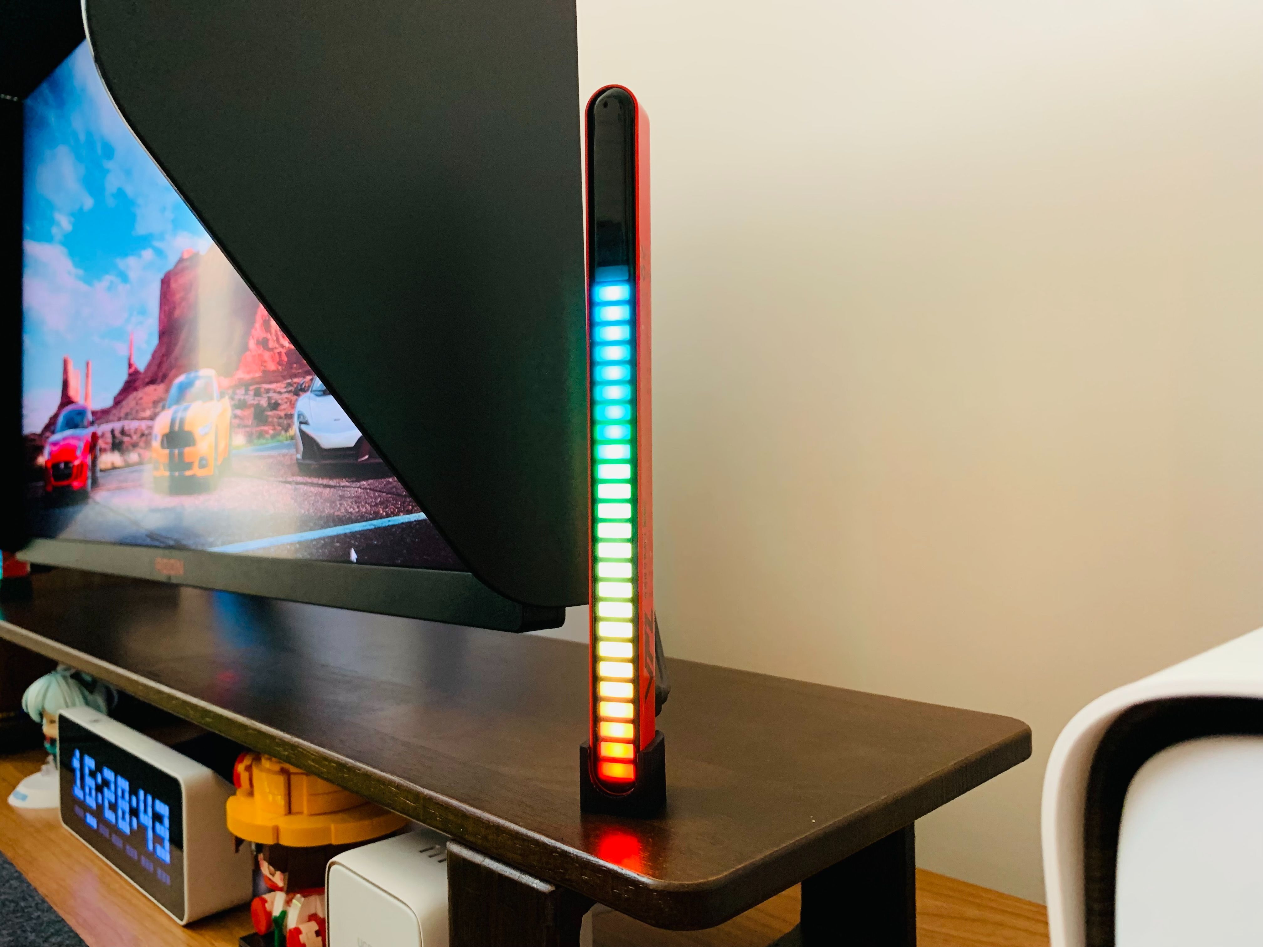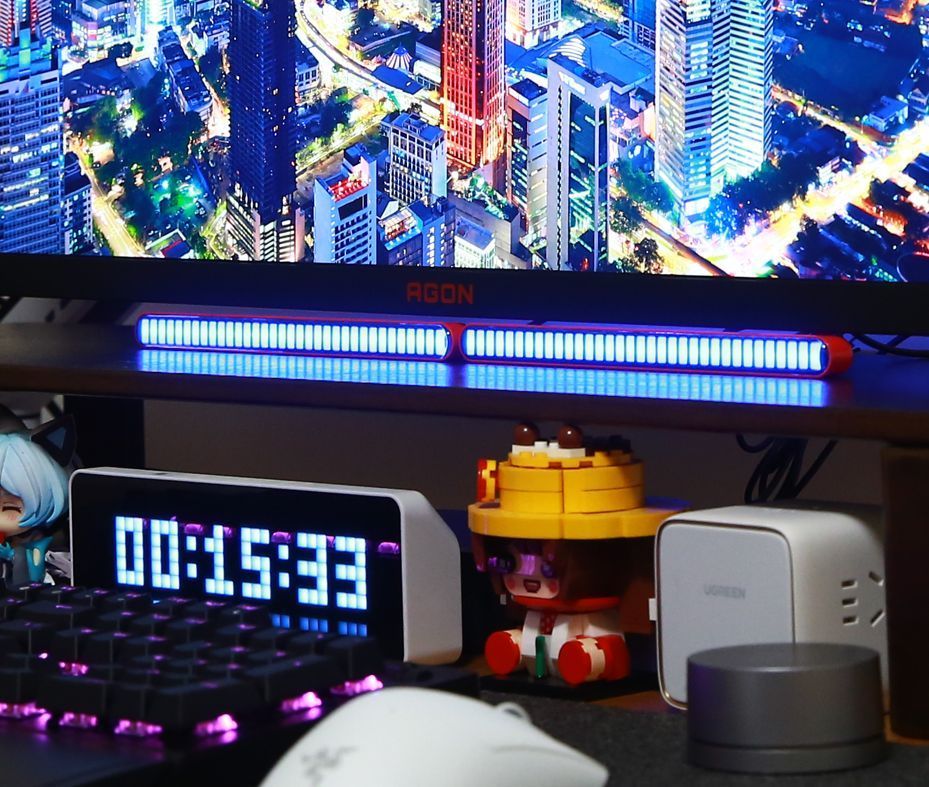 好看的桌搭必不可少的就是氛圍燈光,除了屏幕燈,我還推薦你購買VFZ的雙面拾音燈,這是一款可以根據音樂節奏變換光效的氛圍燈,前後都有LED燈珠,支持10種律動模式和20種色彩組合,還可以調節靈敏度和過濾環境音,它可以用於電競、音樂、視頻等場景,增加視覺和聽覺的享受。