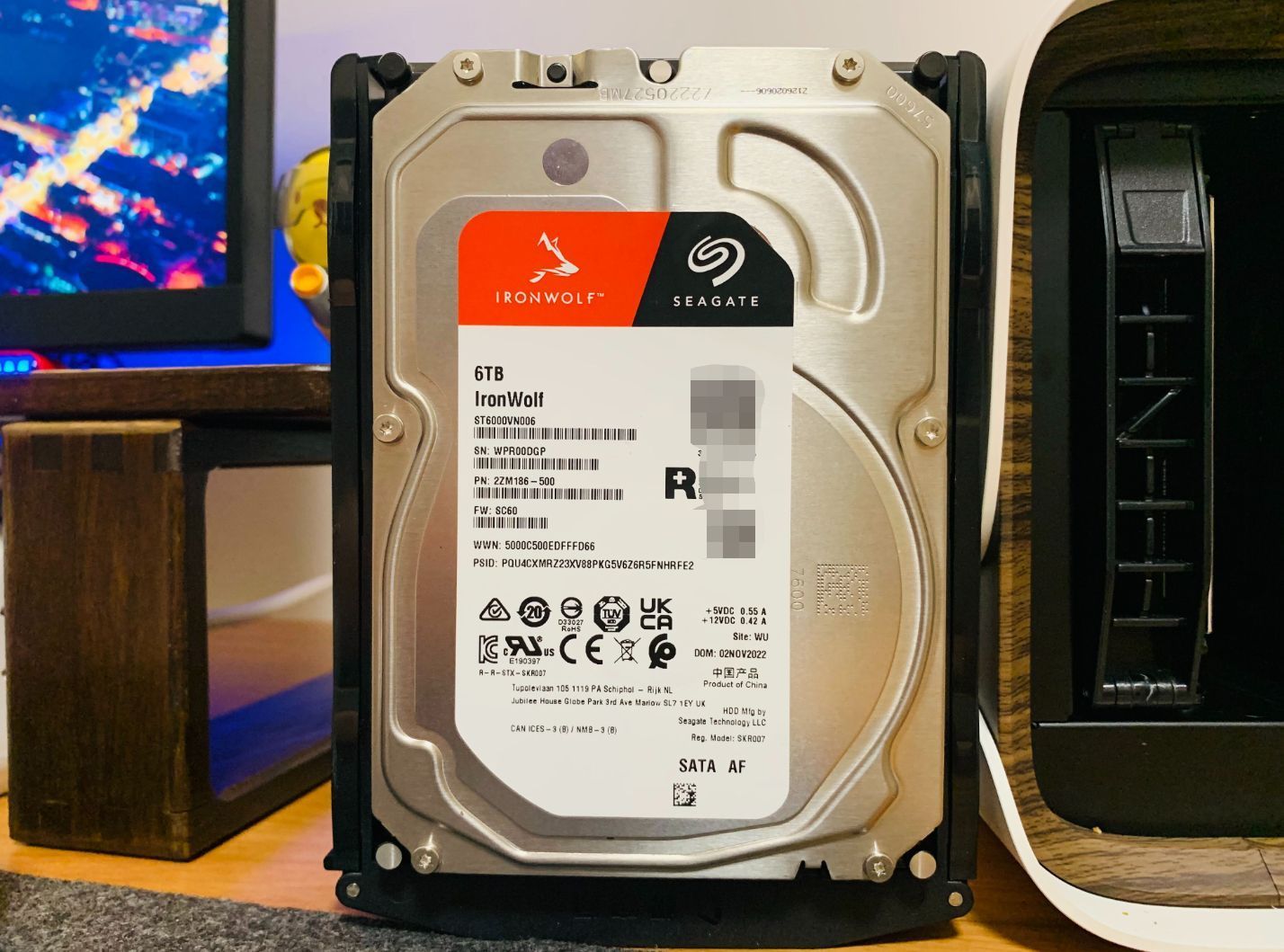 硬盤我採用的是希捷酷狼6TX2,希捷 酷狼系列爲NAS專用硬盤,SATA3接口,緩存64MB,智能陣列技術,性能穩定,兼容性較強,支持大部分NAS設備。適合中小企業和家庭中使用。
