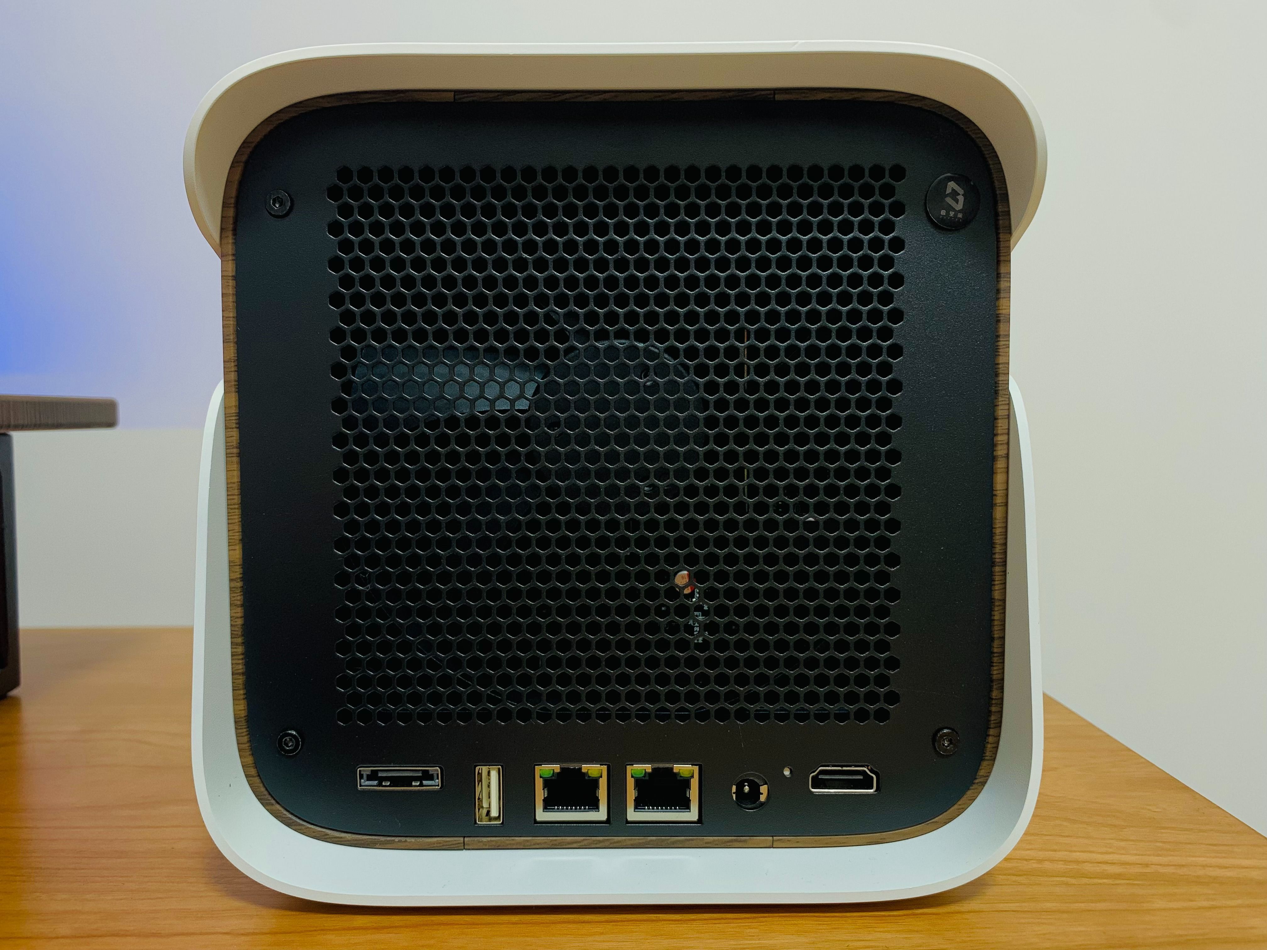 我購買的是國潮紅,外殼有點像蘋果5C手機採用的聚碳酸酯外殼,看起來非常精緻,它的外觀設計很時尚,小巧輕便,可以隨意擺放在桌面的任何位置。Type-C接口供電,可以外接充電器或者直接接入顯示器,通過後面的兩顆物理按鍵,可以輕鬆切換模式和色彩。