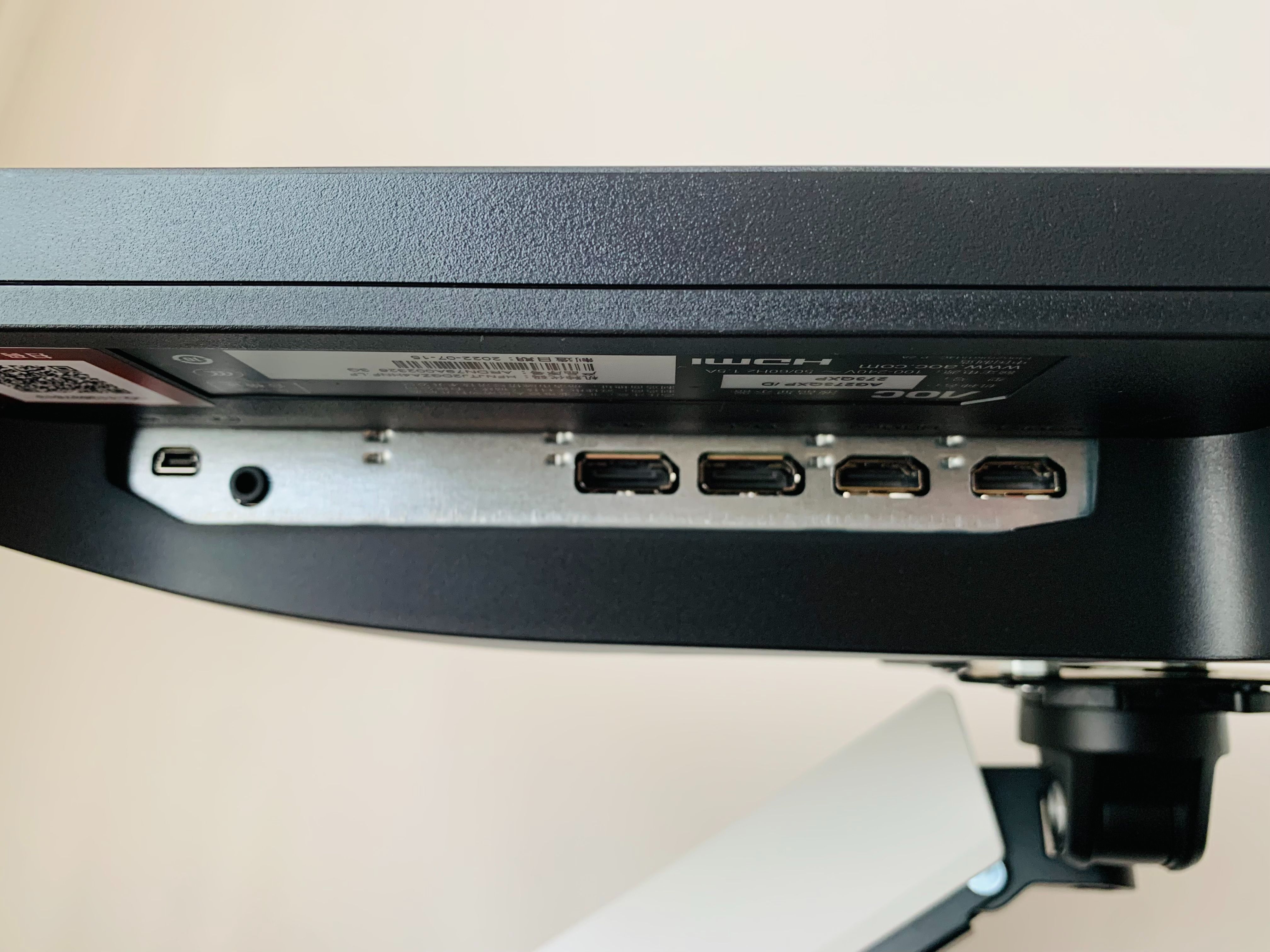接口配置上,AG273QXP/D是非常豐富的,搭載了雙DP 1.4、雙HDMI 2.0和兩個USB 3.2 Gen1接口,而且DP 1.4接口的配置也爲顯示器開滿2K+170Hz+10bit提供了條件。