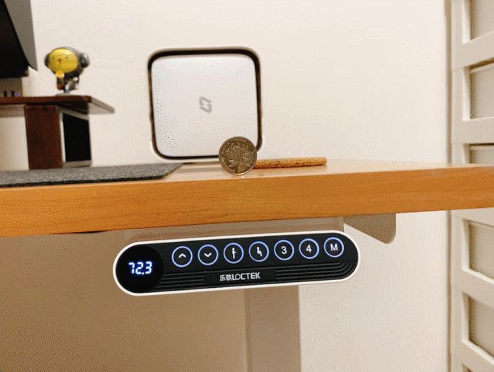 有朋友還在質疑升降桌在升降過程中是否穩,畢竟放在桌面上的電腦等設備價值不菲,一旦摔了損失可就大了。那就用我實拍的視頻來證明一下,在升降過程中,豎起的硬幣穩穩當當沒有倒下,升降電機的穩定性可見一斑了。