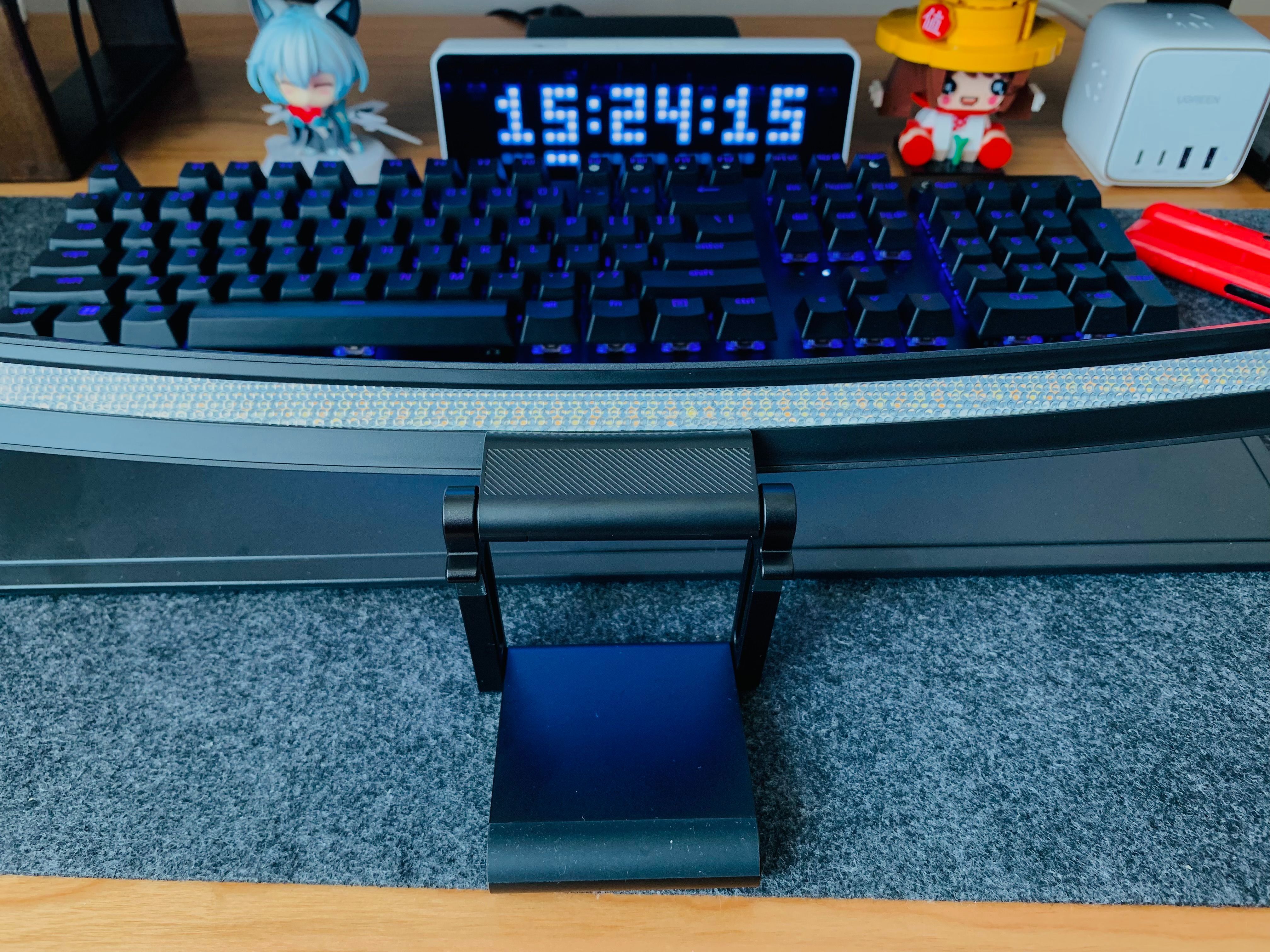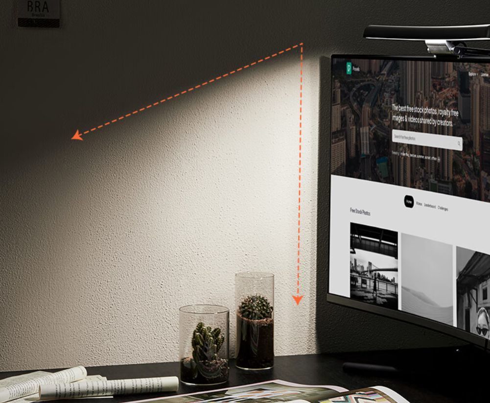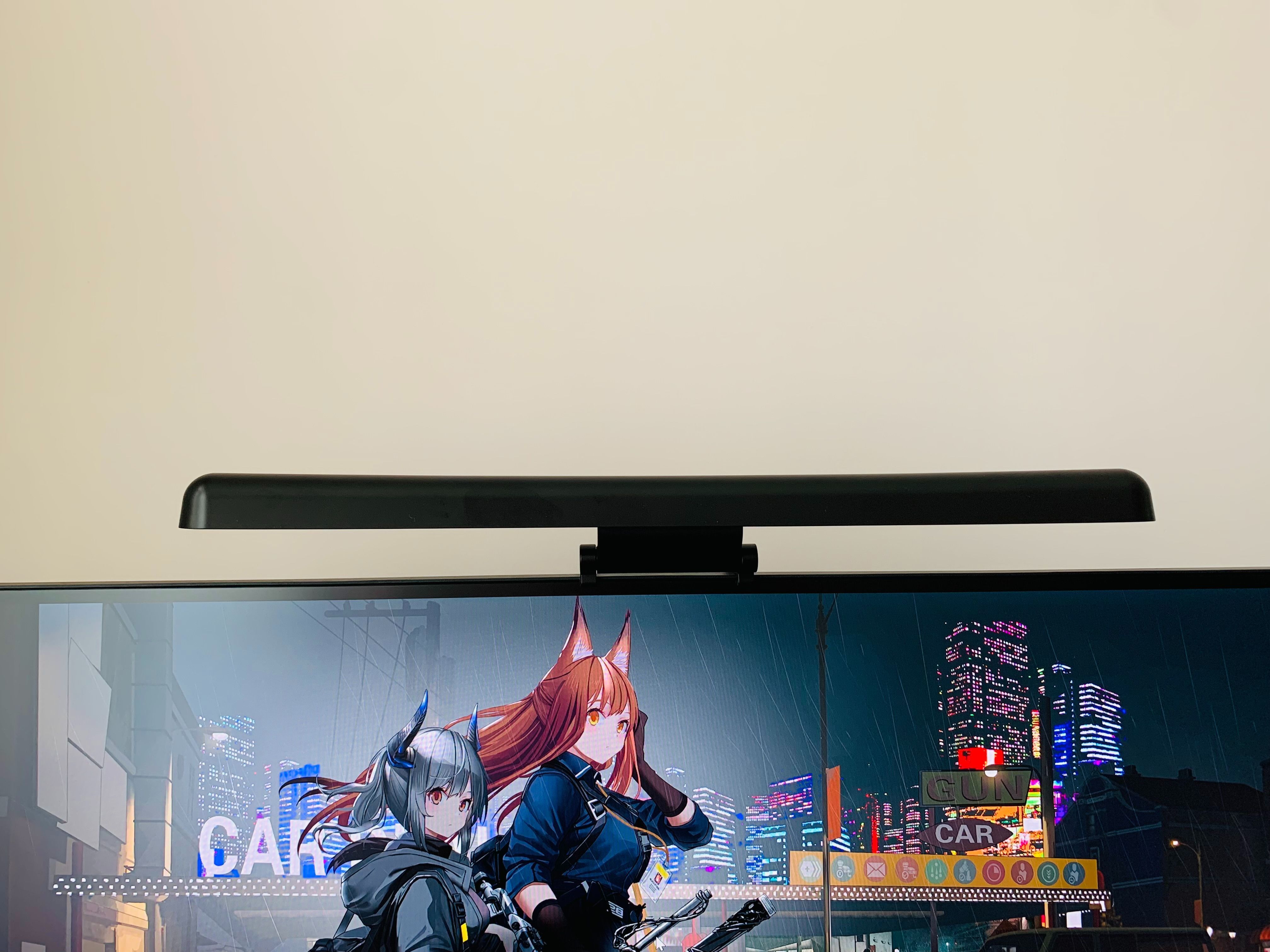 因爲我經常是晚上使用電腦,屏幕掛燈最主要的功能是代替桌面上的檯燈,爲我在晚上使用電腦時提供足夠的光源。因爲傳統的檯燈會在屏幕上產生反射的光線,影響顯示效果。而如果沒有其他光源,在黑暗環境長時間使用電腦,眼睛會比較難受。這樣只要開啓一個掛燈,也可以帶來足夠的照明。
