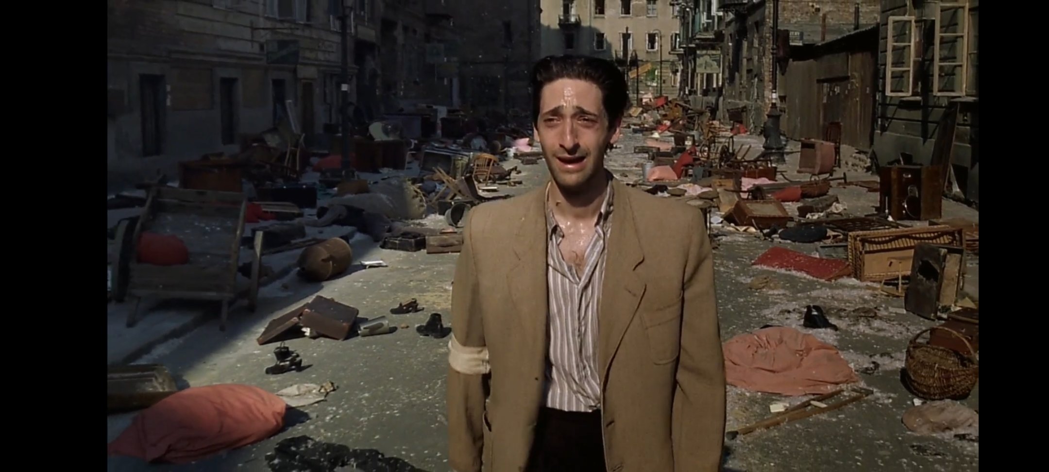 席皮尔曼获救了,可是他也什么都没有了,他家破人亡,一无所有,所幸,他还是能继续在波兰电台演奏,安慰着经历战争的所有人。