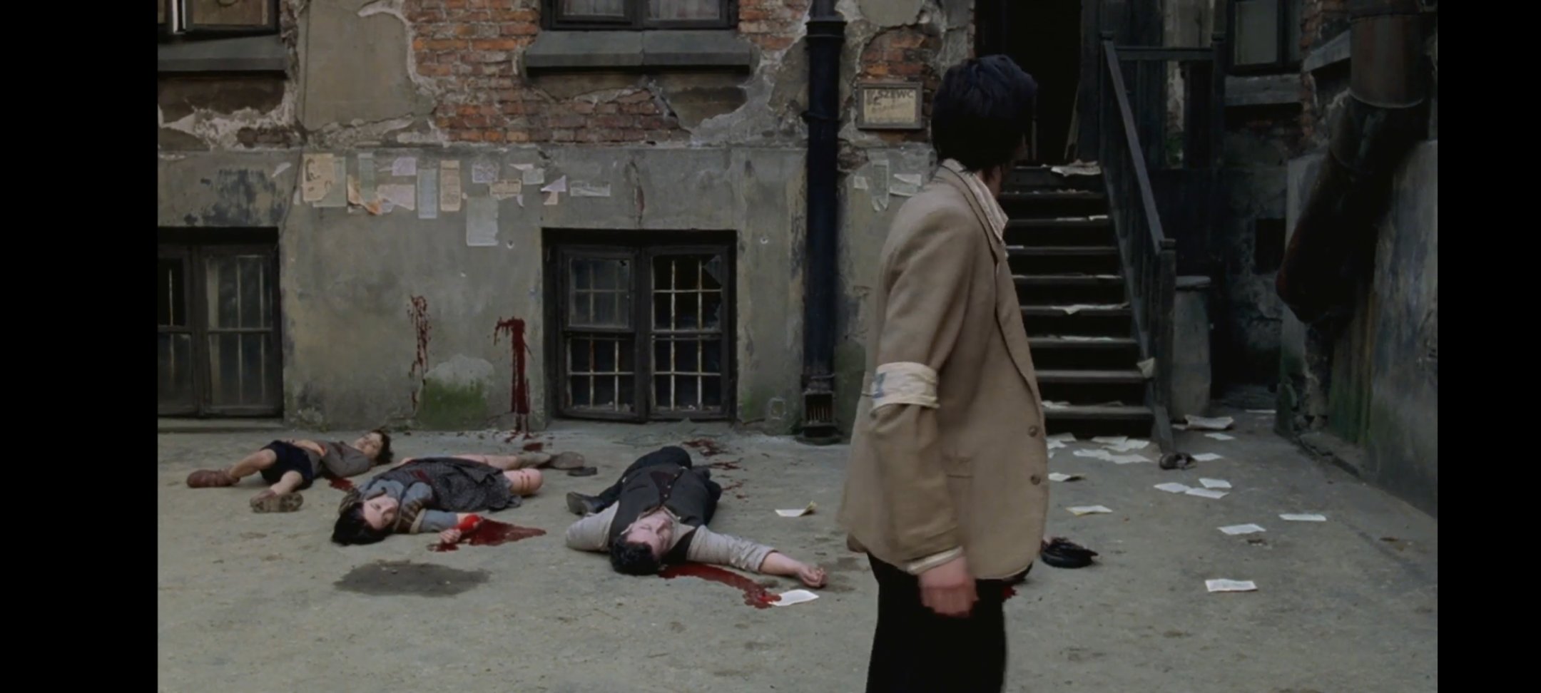 钢琴家里的一幕幕简直就像地狱,纳粹半夜故意敲开无辜者的房门,看到谁都勒令他们站起来,一位残疾的老人无法站立,就连人带车推下阳台,将老人摔的粉身碎骨,然后再将他所有的家属带下楼,让他们逃跑,然后在后面追赶,追到了就枪杀,没有任何理由,意义只是为了"好玩",偷窃了一点食物被殴打致死的孩童,丈夫被抓走而陷入迷乱的妇女不停的在大街上呼唤,流浪的老人抢夺另一位老人的食物导致食物打翻在地,流浪老人甚至趴在地上舔舐污秽的食物祈求苟活,这一桩桩一件件都是因为纳粹的暴行而导致的冰山的一角。