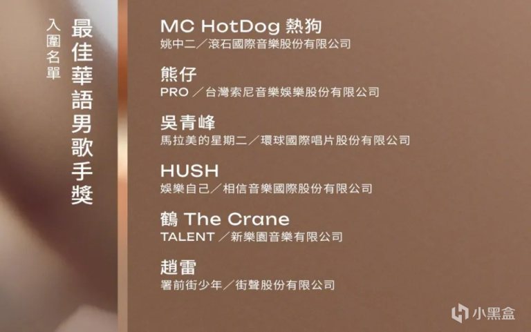 最佳华语男歌手,吴青峰、Hush、热狗、熊仔、鹤以及内地歌手赵雷入围!最佳作曲人奖,吴青峰、徐佳莹、戴佩妮、黄玠玮、艾怡良、郑宜农和何俊华入围!