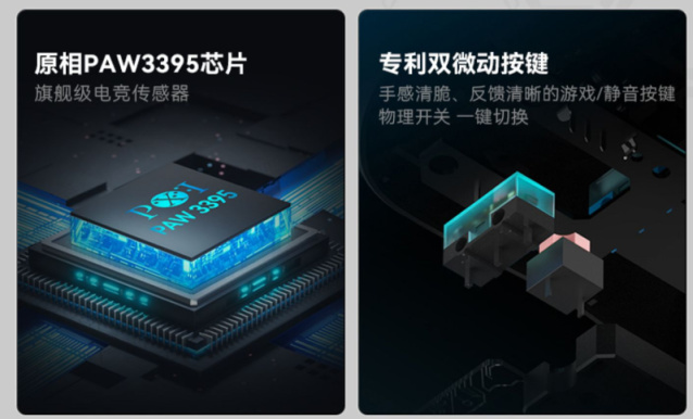 看到这里确实是没有什么过人之处,但是接下来才是最让人惊奇的部分。鼠标背面提供了微动切换的开关,而且还是左右键各一个的独立开关。不得不说这样的设计可以用“开创性设计”来形容。
