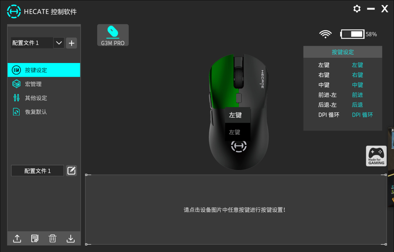 下载安装好以后,打开驱动界面一眼望去一目了然,虽然很简陋,不过很实用。可以通过鼠标正面指示灯不同的颜色来区分DPI你也可以自定义你喜欢的颜色。