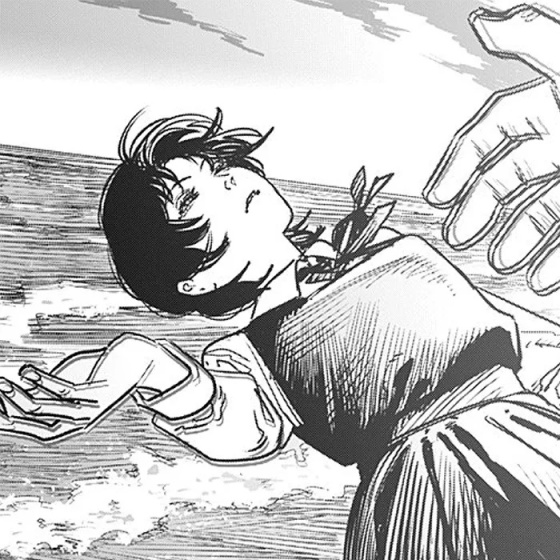 他跟《電鋸人》裏的電次不一樣,電次從一開始就什麼都沒有,所以前面的他什麼都不怕,從零開始,用瑪奇瑪的母性,岸邊的父性,秋和帕瓦的兄弟姐妹情誼成長,所以直到《電鋸人》的後期,電次徹底成長完畢纔開始擁有了人的情感。