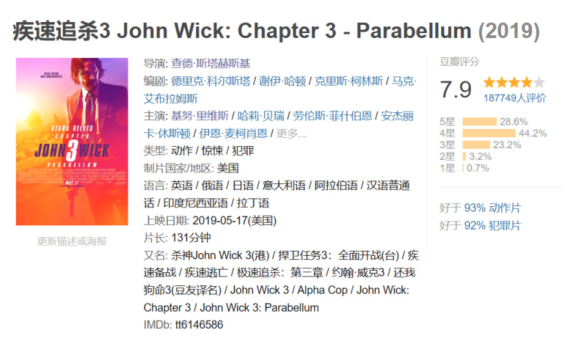 如果你问我最近几年有什么动作爽片值得推荐,那我第一个推荐的一定是《疾速追杀》系列!