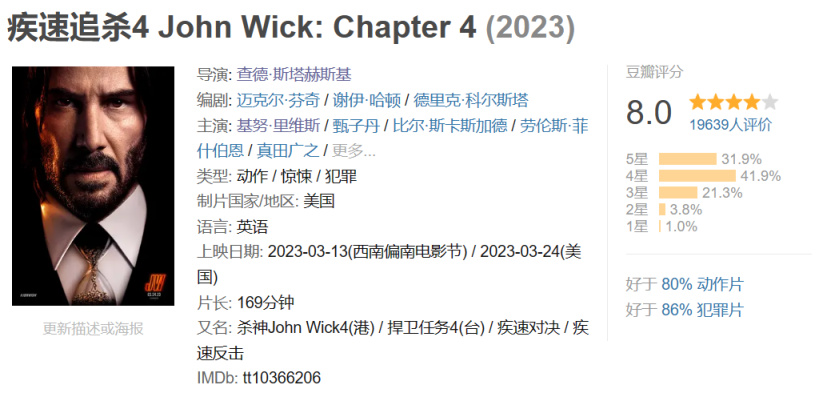 不过对于大陆的盒友们来说,《疾速追杀4》现在只能看到非蓝光版。不过本片将在5月23日登陆数字平台,到时也会有高清蓝光版让各位享受啦!感兴趣的盒友也可以去把前三部补上,等着第四部的到来~