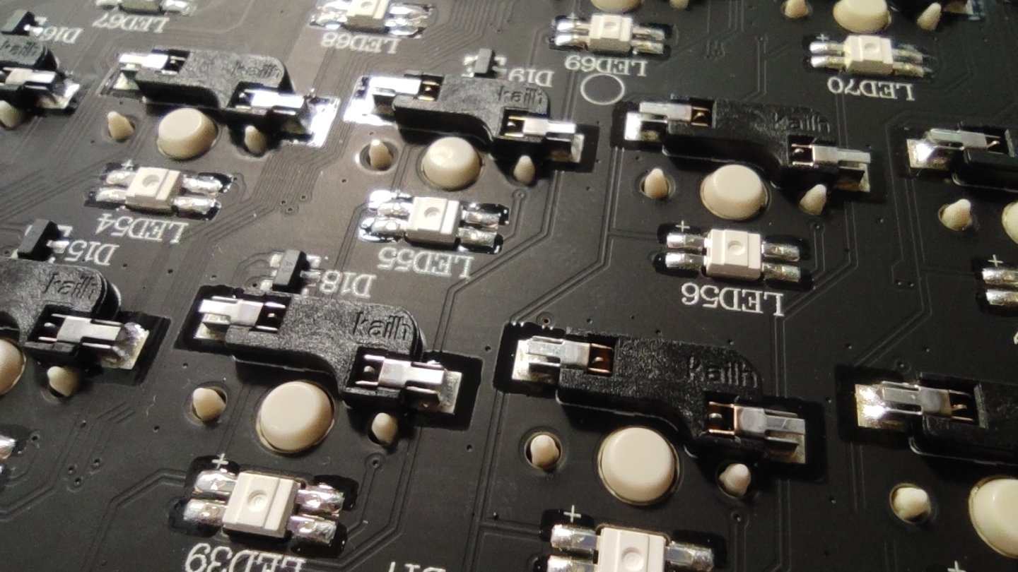 從pcb可以看到v98pro採用的是五腳軸座熱插拔,並且爲上燈位,軸座爲凱華的軸座。