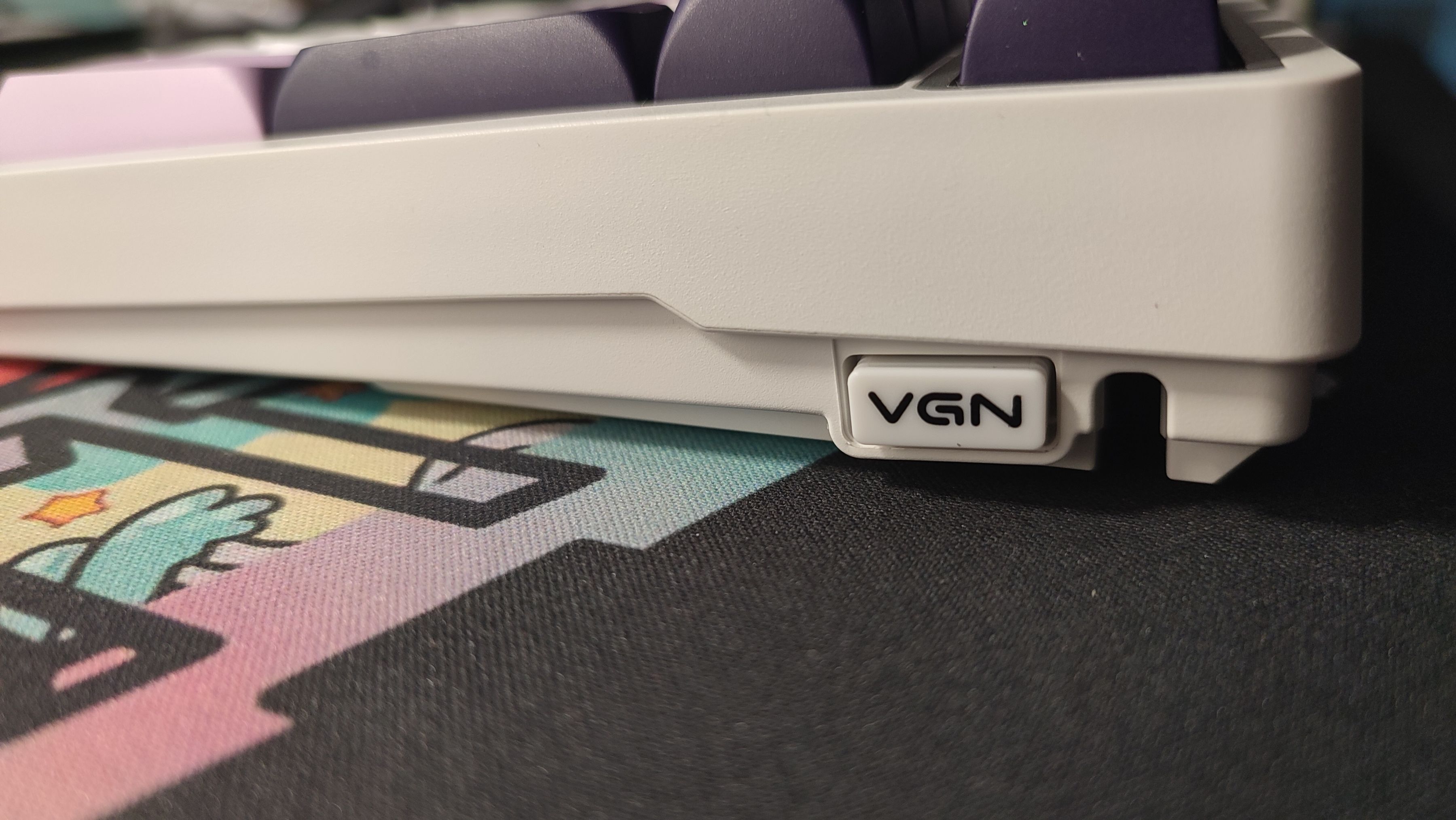 不同於N75的橙色包裝,V98PRO底色採用黑色,正面能看到VGN品牌名稱以及鍵盤型號,右下角標註了鍵盤配列。不過我想你們最關注的應該還是左側那個動力娘。