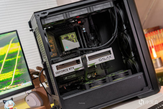 全黑的外观下使用的配置采用了i7 13700KF的CPU,主板为首次在HERO中加入金属背板的ROG Z790HERO主板,20+1(90A)的数字供电和polymo灯效让其性能颜值兼具,显卡则是影驰的4070TI金属大师,纯金属的硬朗风格,满足2K高刷FPS和大部分的4K高特效游戏的需求。内存为DDR5 6000的美商海盗船复仇者32G套条,固态是1TB的星曜X4 PRO。散热方面使用了比较流行性价比高的九州风神LT720冰魔方360水冷,应付i7 13700KF搓搓有余。整机才用了安耐美的1050W额定功率的REVOLUTION II金牌全模电源,当然也支持ATX3.0规格