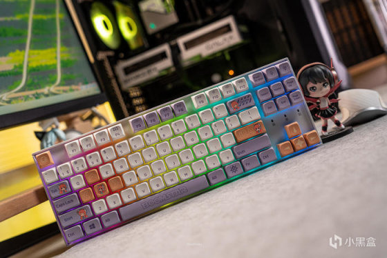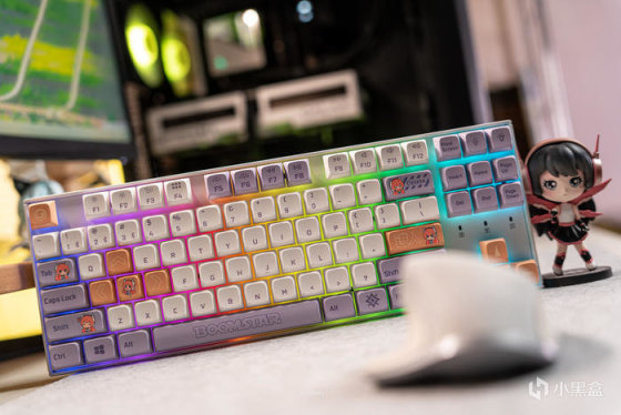 K8 PRO星曜娘联名款机械键盘采用了RGB设计,不过键帽为OSA PBT键帽,不透光所以RGB是从键帽四周透光,颜值灯效手感都兼具了