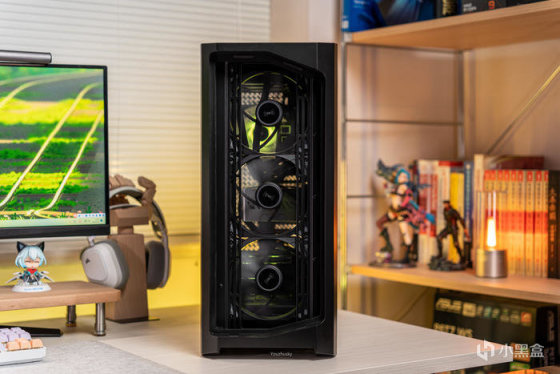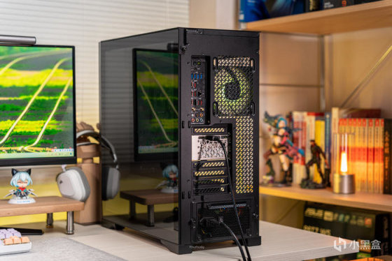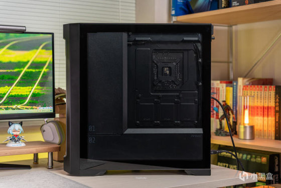 背面与正面采用了同样的4mm钢化玻璃,不过内部有机甲遮线盖可以遮挡不方便的理线