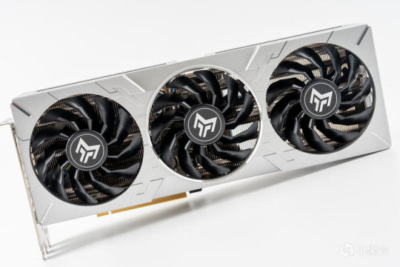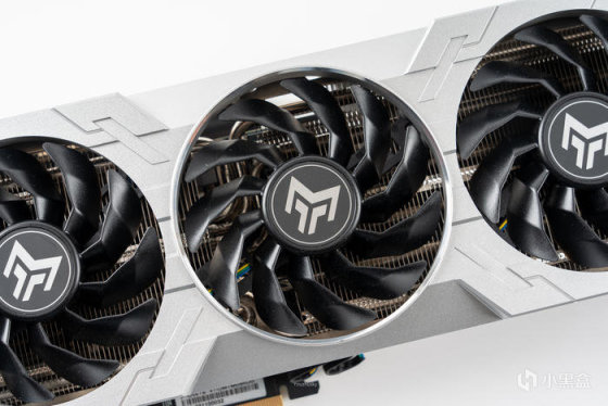 整个显卡散热器仅有的三个圆形非直线条修饰,3个102mm超大净霜风扇,三折扇叶设计提供更强风力和更大风量