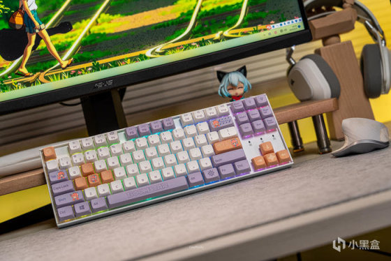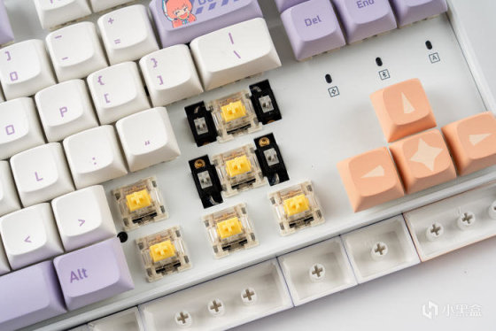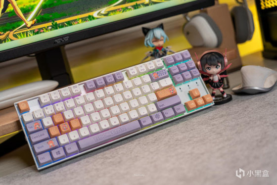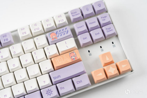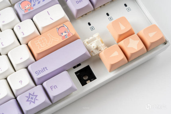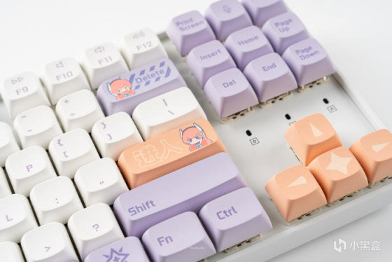 整个键盘上5个星曜娘的键帽,并且为主白副紫色与橙色的星曜色