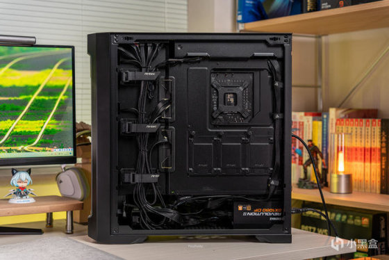 打开遮线盖之后的内部理线效果,电源为安耐美的GX1050DF,REVOLUTION II金牌全模ATX3.0电源