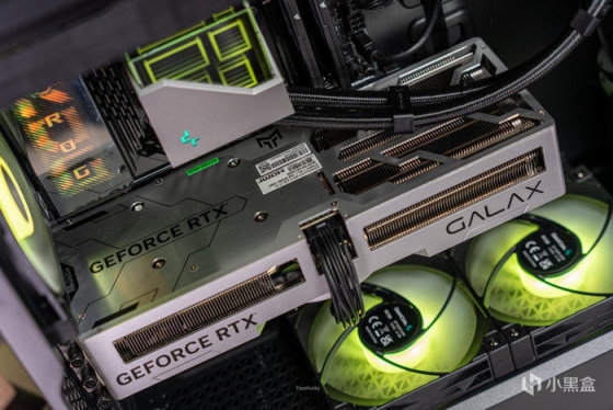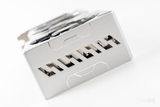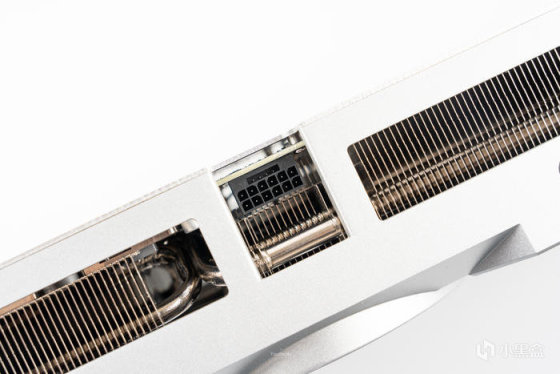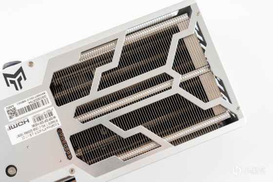 显卡尾端的直方造型和装饰,以及依稀可见内部的鳍片和热管