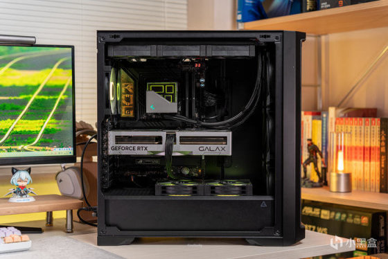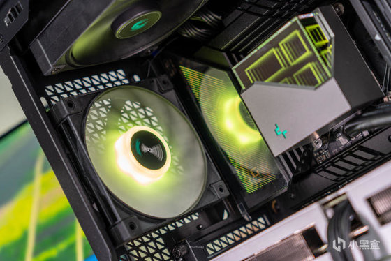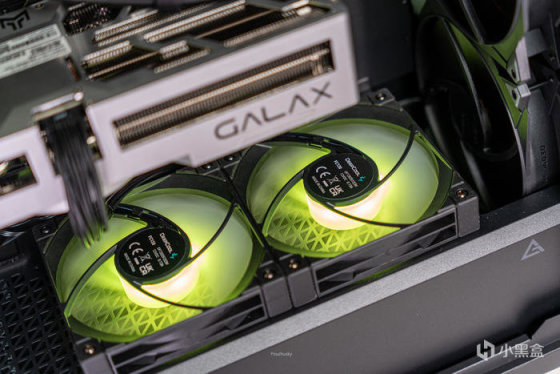 三联装的FC120 RGB风扇底部也装了两把,正好可以默认低俗下为4070TI金属大师散热