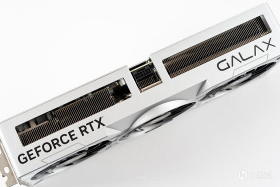 三槽挡板(三槽厚度63mm)没有全占顶部空余3mm,只有60mm的厚度,顶部平整的设计,中间两个长方形的镂空出风散热,左边GEFORCE RTX,右边GALAX的影驰logo