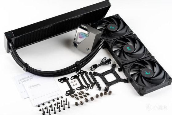 LT720冰魔方的全家福,除了无限镜冷头盖之外都为全黑配色,全扣具比较齐全支持AM4/AM5和intel 1700以及TR4和20XX扣具
