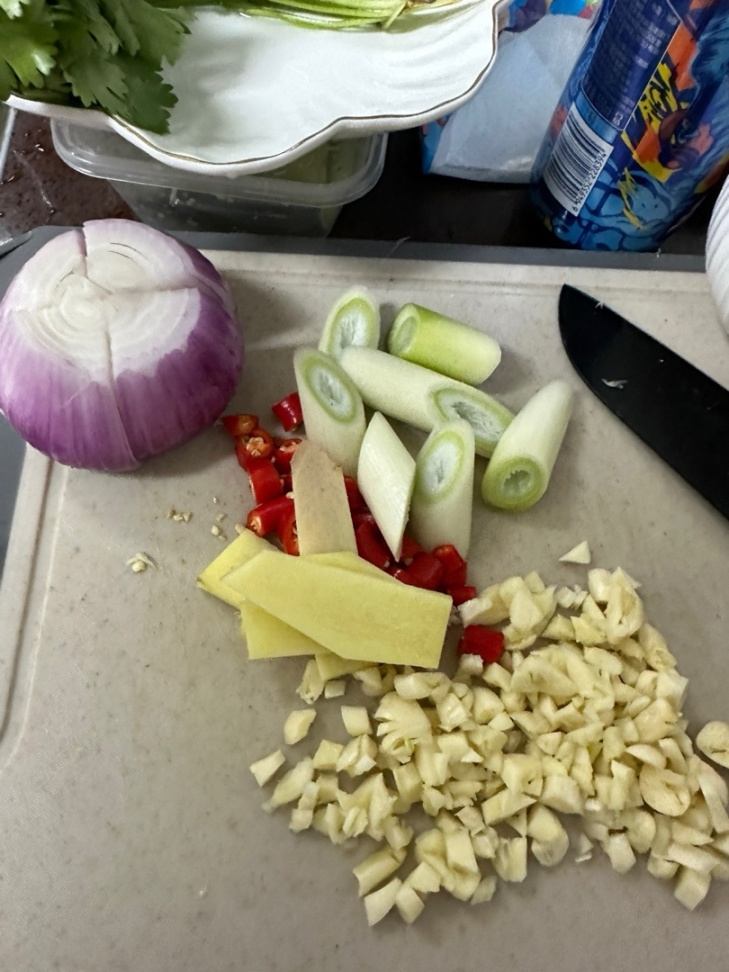 1.先把龙虾洗净、晾至表面无水分,葱姜蒜辣椒切沫,配菜切条(工作量有点大哈,可以请人帮忙)