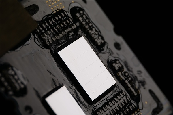 這是去掉散熱頂蓋的紅外照片,可以看到銳龍7 7800X3D在電容元件上也都塗滿了散熱材料,畢竟增加了64MB緩存,發熱量更大。