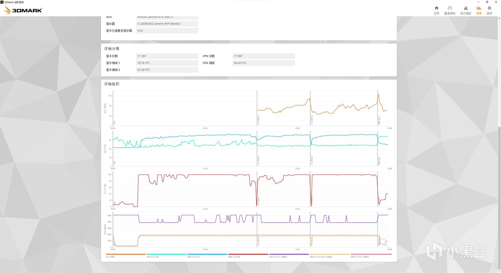 DX11 1080P的FIRE STRIKE基准测试得分为:28871,FPS帧数平均值也是110FPS。可以总结一下,RTX3060Ti是入门级的2K显卡,在1080P分辨率下更能突显其性能优势。