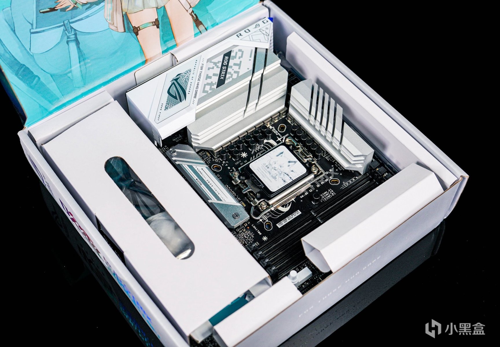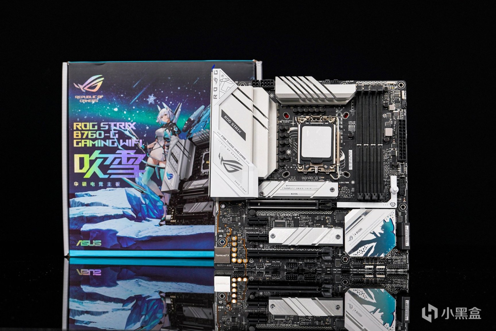 在选择主板上,按照机箱的颜色来搭配的,而华硕的吹雪系主板也是非常多白色装机所使用频率最多的一款主板之一。ROG STRIX B760-G GAMING WIFI D5 。这是ASUS第一款把吹雪这个IP系列主板下放到M-ATX板型上,并且采用G系后缀来命名,所以这张主板也号称—小吹雪。外盒包装上对比前几代B系列吹雪,采用了更为深色的蓝白配色,并且主板外盒里印有这个虚拟IP雪舞战姬虚拟人物,对比上几代吹雪系主板的包装,这代吹雪系列更花心思了。