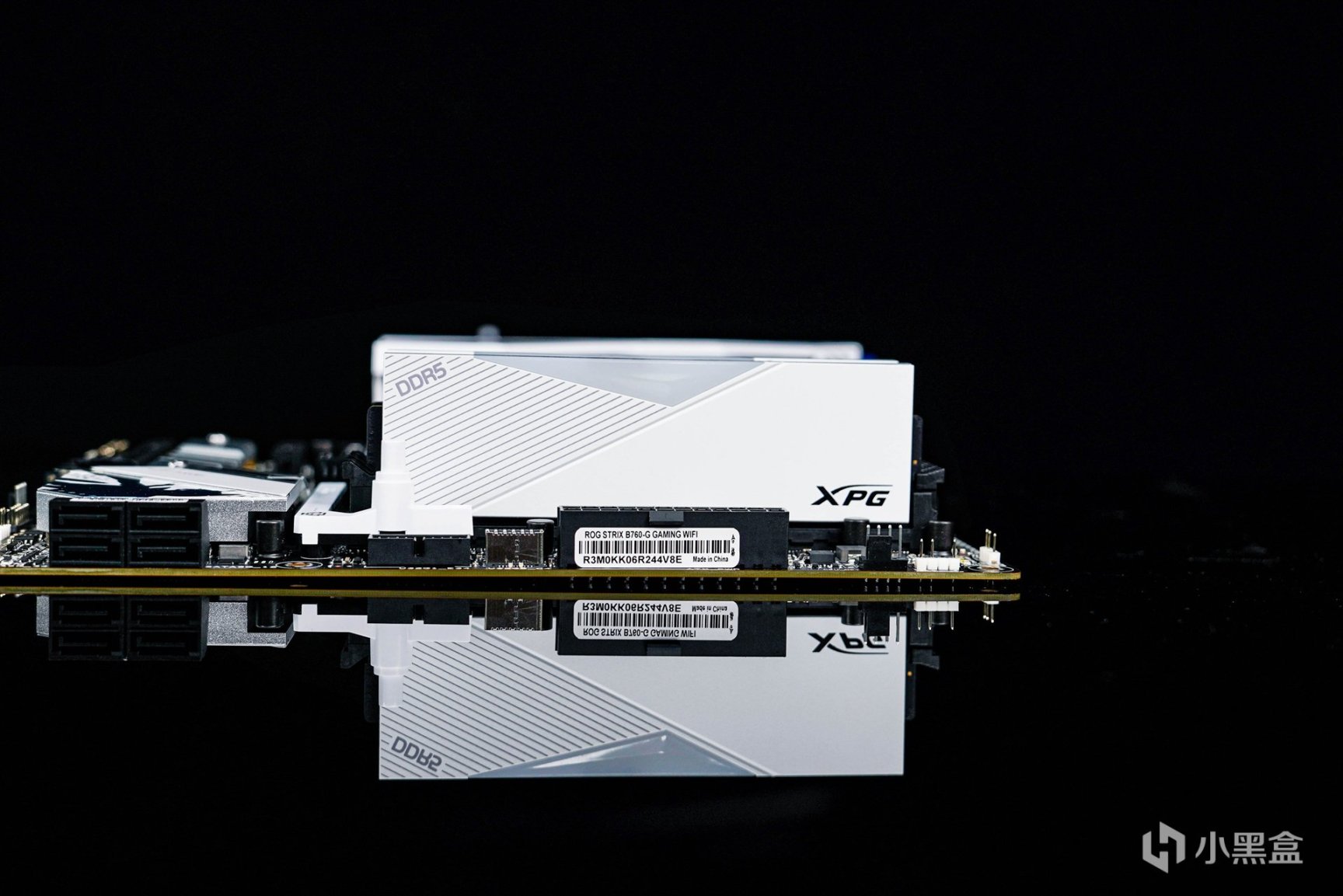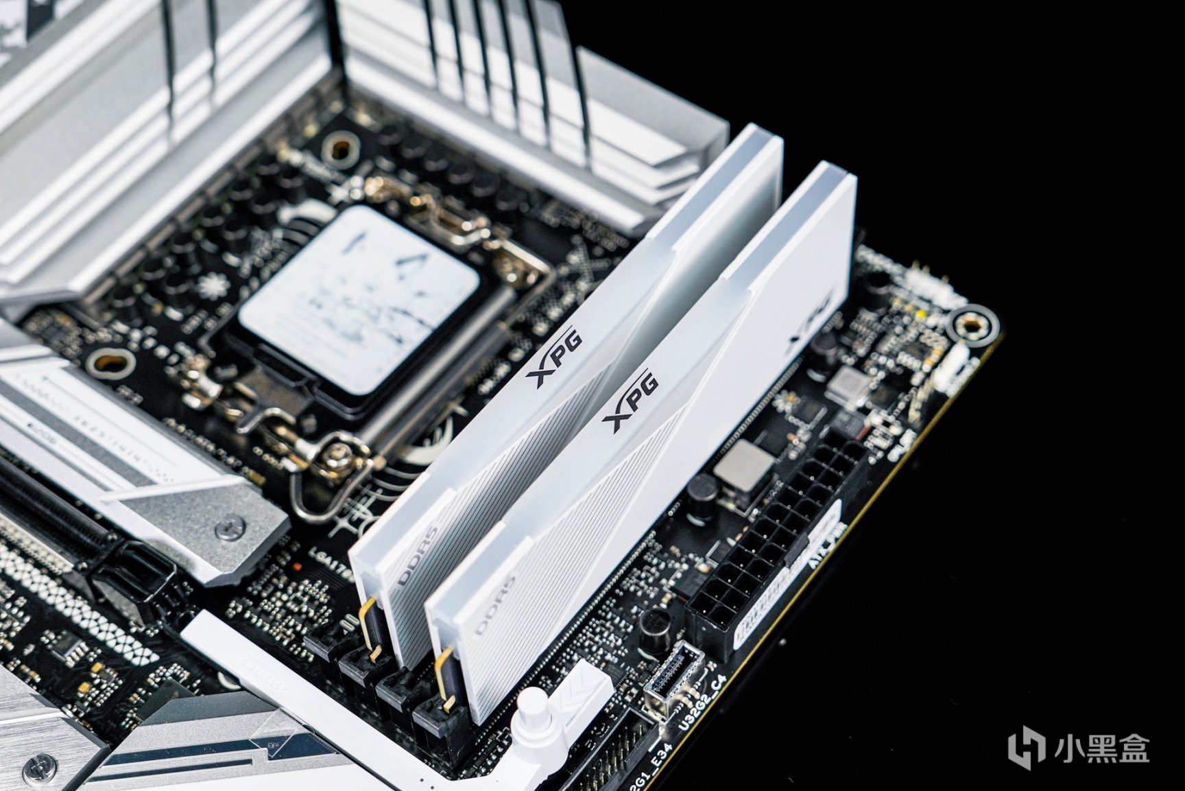 XPG 龙耀 LANCER 32G(16G*2) DDR5 6400 CL32内存,这款内存也是XPG卖的比较火爆的内存产品之一,黑白双色可选,加上1.95MM的厚度的条纹+磨砂面组合的马甲在质感上就不用多说了,内存均采用了海力士A-DIE颗粒,支持XMP3.0,XMP频率为6400MHz,内存时序为CL32,内存工作电压为1.35V。A-DIE在内存超频上可挖掘更大的潜力也是现在一众内存厂商最常见的内存颗粒选择,而这次使用的吹雪主板默认频率支持5600内存,而使用华硕AEMP II技术,可让内存最大可OC至7800Mhz+。