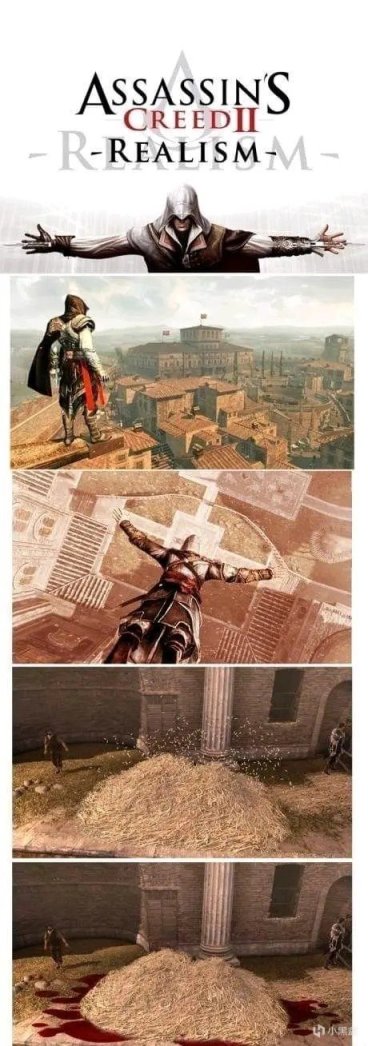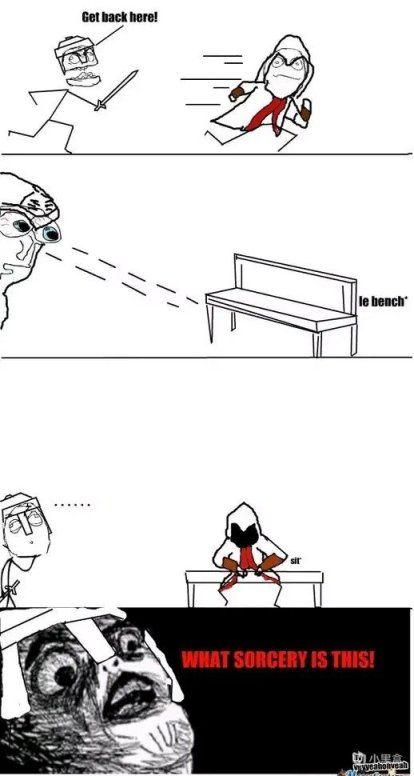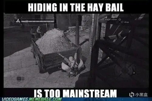 你以为《刺客信条》是潜入游戏吗?不,刺客信条其实是无双游戏,这个梗就是玩家开无双把敌人都杀了,这样就没有人知道主角潜入了。