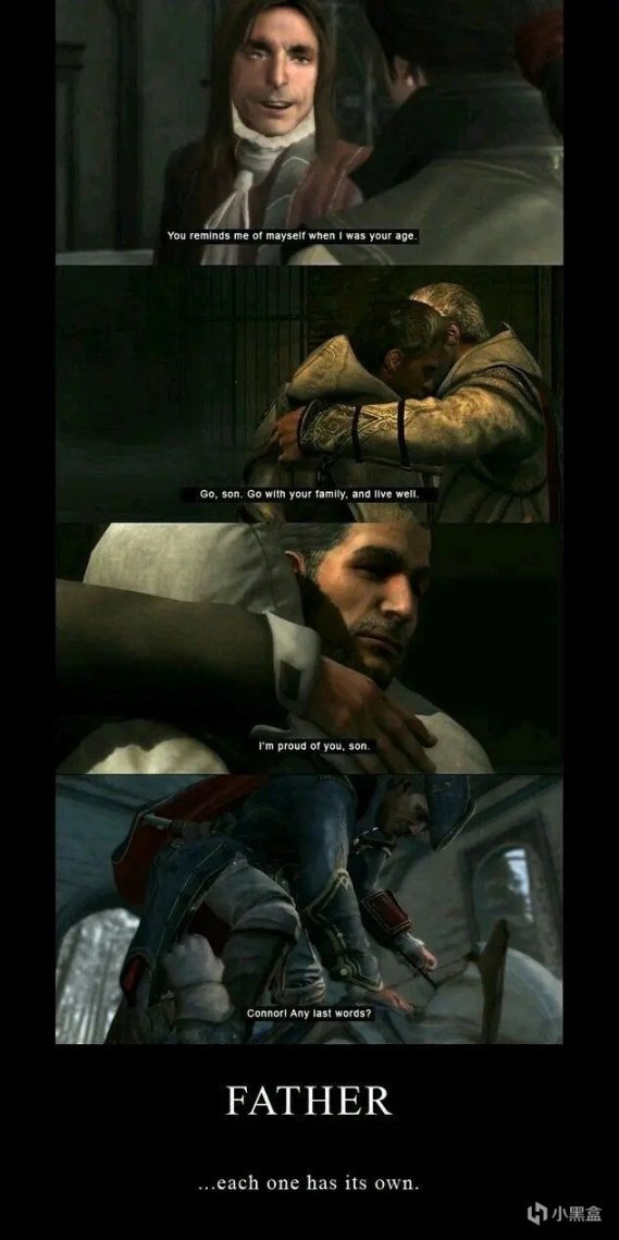 而后海尔森的孩子康纳又被培养成了刺客,并最终杀死了海尔森,这三代人的故事不仅是肯威家的悲剧,也是刺客组织与圣殿骑士两个阵营的悲剧。