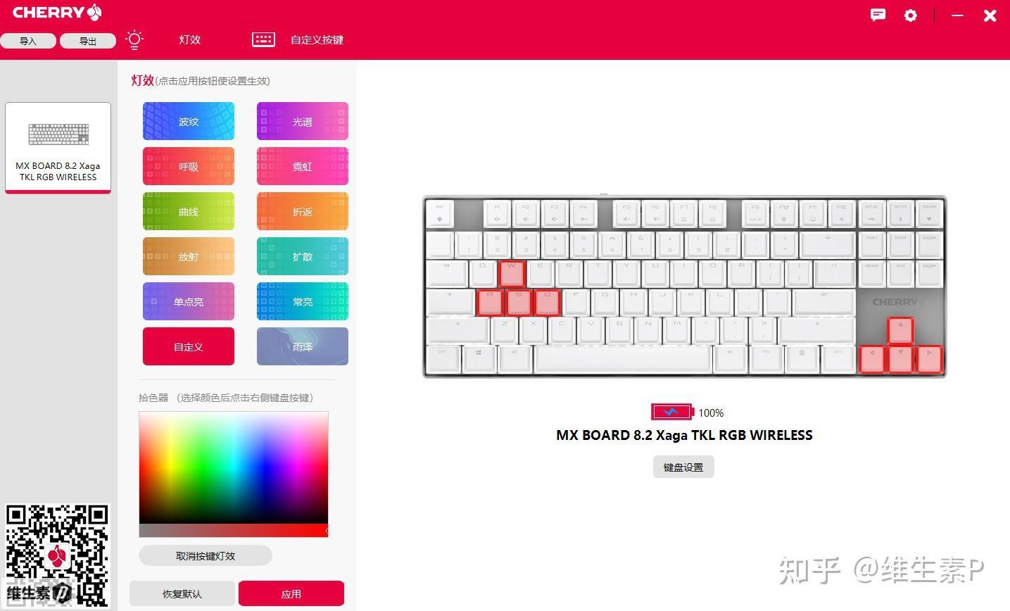 鍵盤支持無線三模,帶有RGB燈光。