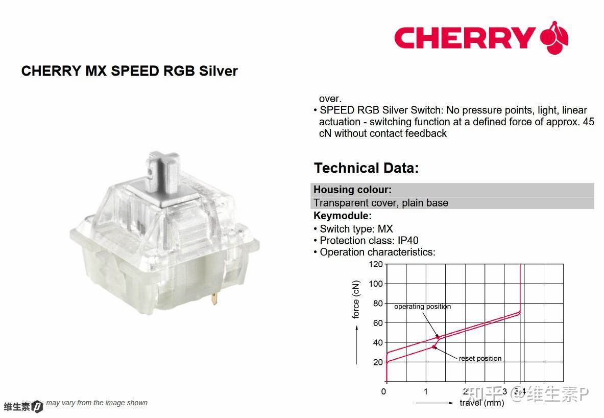 觸發力度爲 45cN,觸發鍵程爲1.2mm,總鍵程爲3.4mm,主打的是一個線性輕盈快速擊發的手感。