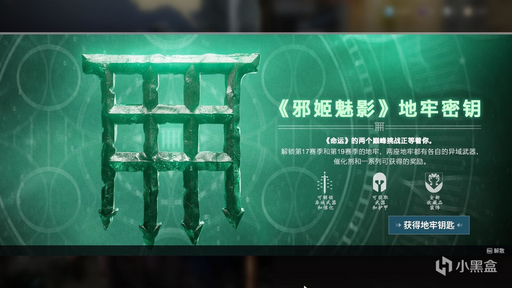 因为新地牢的加入,S19赛季加入的守望者尖塔地牢将加入地牢轮换(轮换到时才能打守望者尖塔的大师难度)