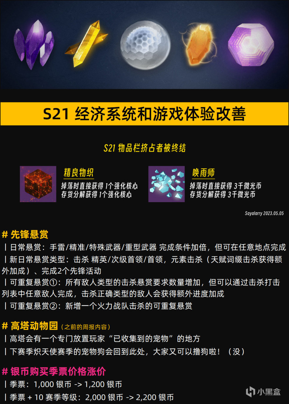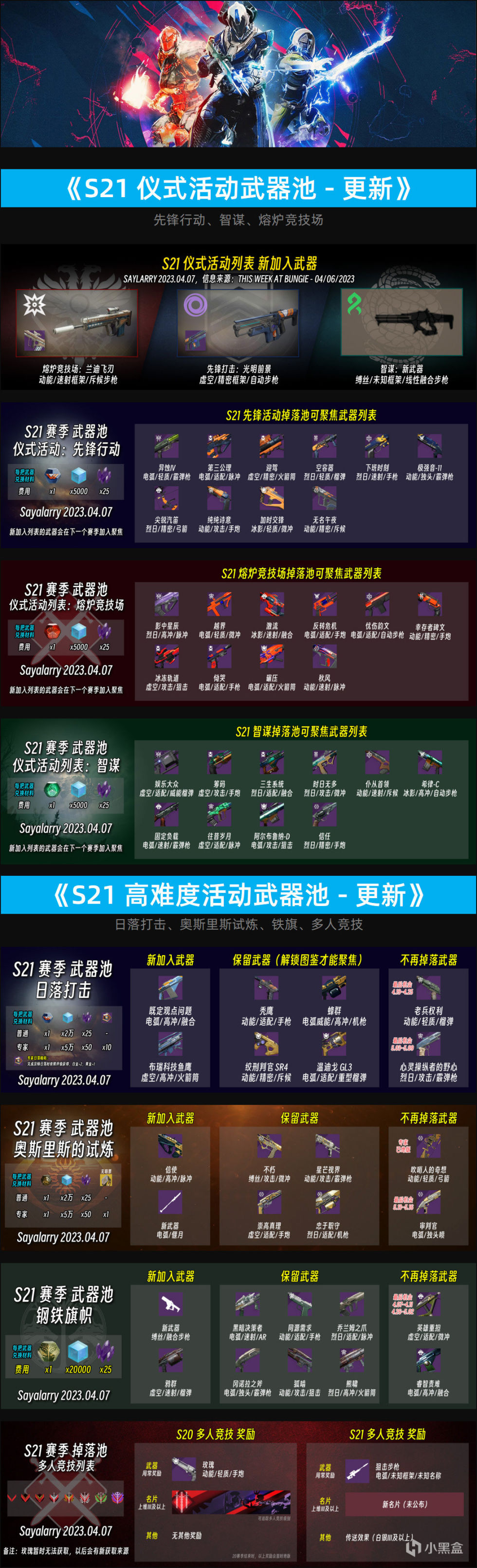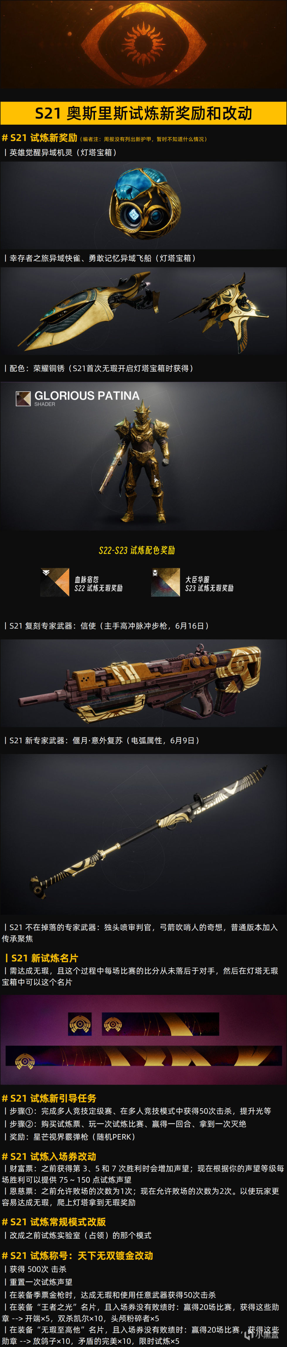 S21 仪式声望武器、主要活动武器池更新、试炼奖励更新