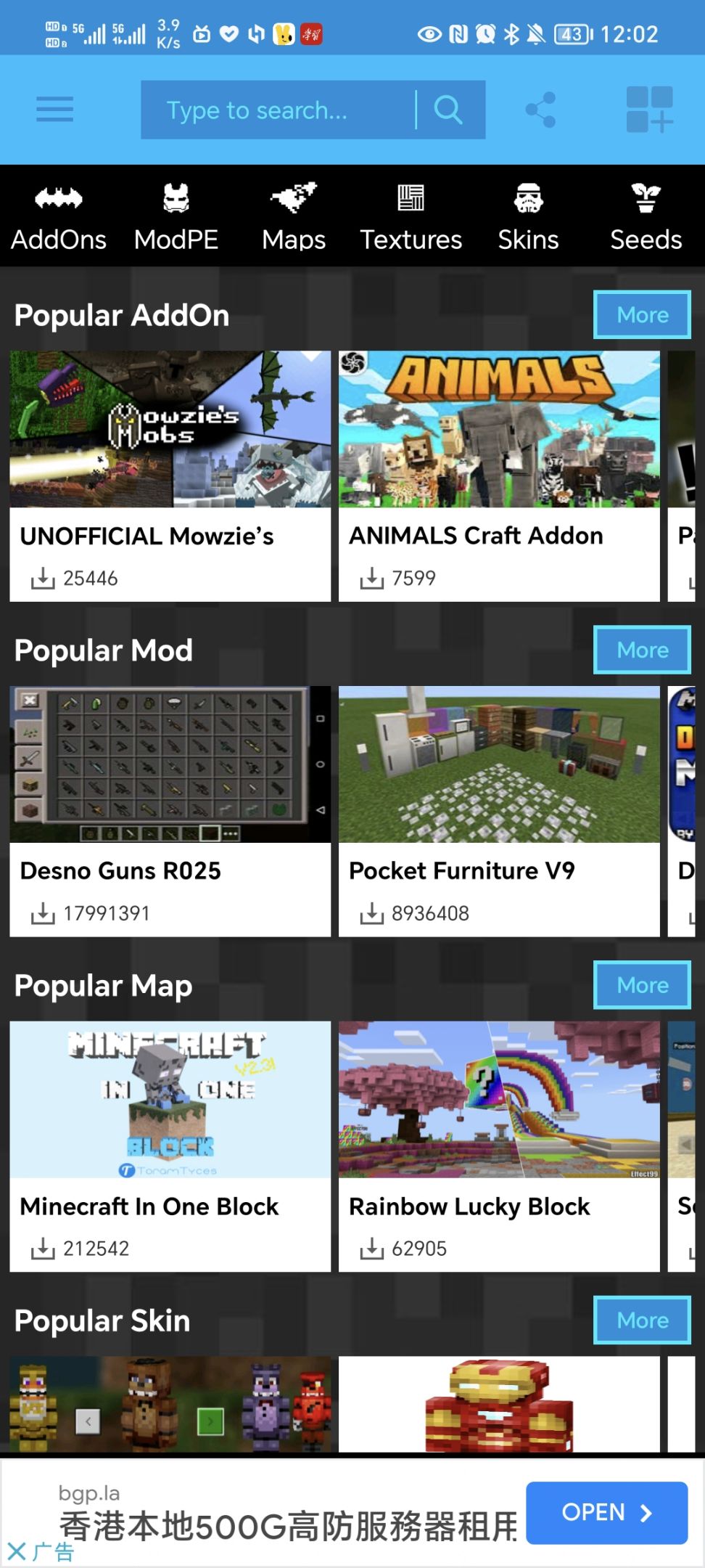 在這個軟件裏你可以下載到許多模組、材質包、地圖、皮膚等,還有許多人分享地圖種子,唯一的缺點是沒有中文。