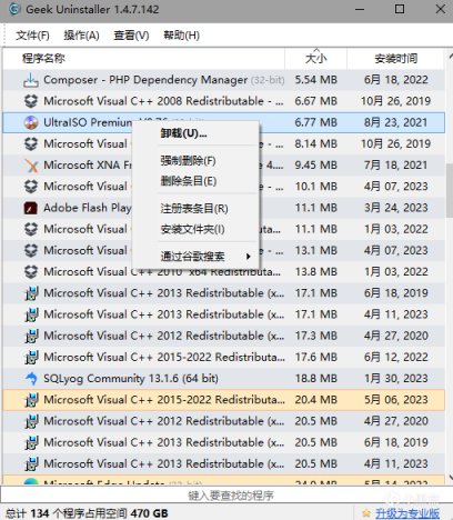 右击的功能也是十分的丰富,有卸载,强制删除,快速定位注册表,文件安装目录。