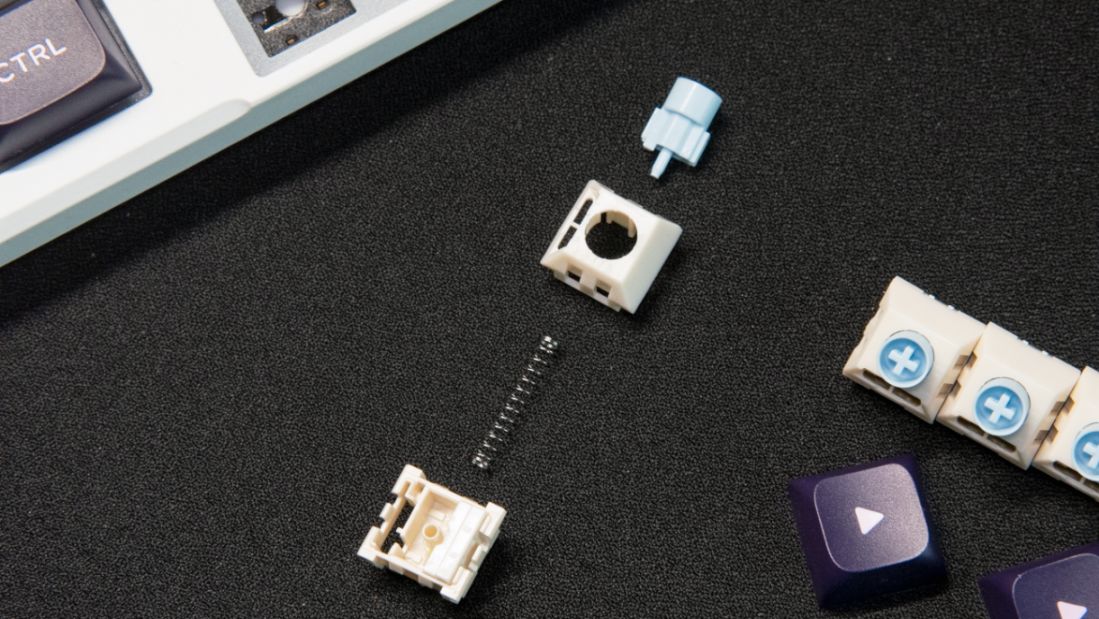 拆開軸體可以發現這次藍莓冰淇淋軸心相比原版一定程度的加長,觸底方式也從軸壁觸底改成了軸心觸底,手感上要更顯清脆一些。