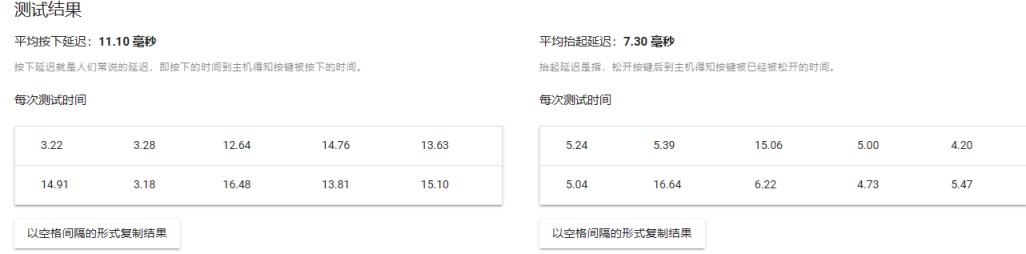 - 有線模式;按下延遲:19.61ms,抬起延遲:19.44ms