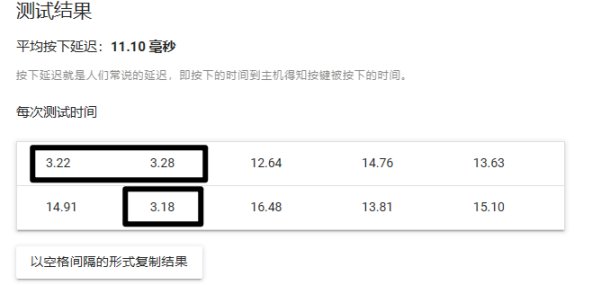 這也證實了,老版本使用冰淇淋軸的V98Pro也可以通過固件升級來達到和新版本同樣的延遲表現。